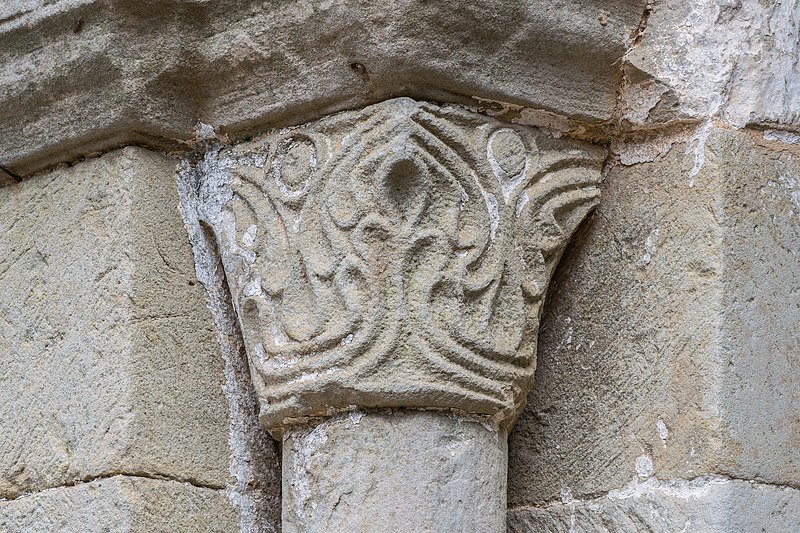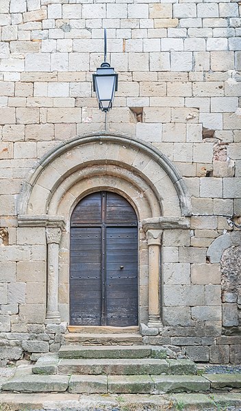 À l'est, l'abside semi-circulaire est réalisée en pierre de taille assemblée en grand appareil et surmontée d'une corniche moulurée. La façade méridionale s'ouvre sur un portail en plein cintre à double ébrasement, flanqué de deux colonnettes et d'impostes saillantes qui supportent une archivolte ornée d'un arc torique et d'un larmier ; cette façade est par ailleurs renforcée par deux puissants contreforts et ornée d'une petite arcature de deux arcades reposant sur une fine colonne engagée partiellement détruite par l'ouverture d'une fenêtre. Un clocher massif s'élève à l'extrémité occidentale de la nef.
