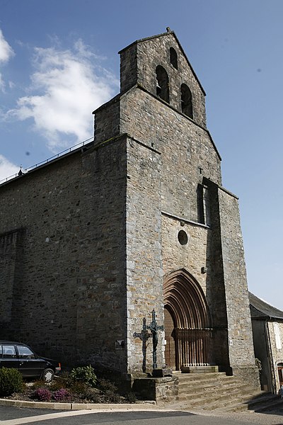 Typique de la Corrèze, l'église conserve des origines romanes et a été reconstruite au XVIe siècle. Le clocher à arcades date du début du XXe siècle ; à la fin du XIXe siècle, une tour-clocher en bois se dressait à l'ouest. La façade occidentale s'ouvre sur un portail à mouluration limousine, composé de cinq voussures en arc brisé qui retombent sur des chapiteaux et une frise sculptés. Le chevet plat est percé d'une grande baie au remplage de style rayonnant.