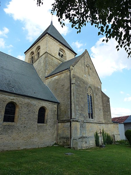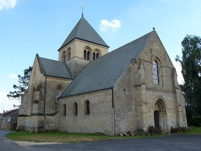 L'église Sainte-Catherine, de style roman, se situe à Alland'Huy-et-Sausseuil, dans les Ardennes (Grand Est). Le portail occidental s'ouvre sur un porche encadré par trois tores en arcs brisés reposant sur des colonnettes à chapiteaux ornés de feuilles enroulées, disposées en ébrasement. Une archivolte décorée de palmettes coiffe ces tores ; le tympan reste nu. Au-dessus du portail, une grande fenêtre à meneau, surmontée d'un arc et flanquée de deux colonnettes à bagues, éclaire la façade soutenue de chaque côté par des contreforts engagés. Le chœur est pentagonal et une tour carrée domine le transept ; chaque face de la tour présente deux baies géminées en plein cintre, à deux rouleaux, et la tour se termine par une corniche à modillons surmontée d'un toit à quatre pans. À l'intérieur, les grandes arcades de la nef, en arcs brisés, sont bordées de tores et d'archivoltes à palmettes, rappelant la décoration du portail. Les piliers portent, à chacun de leurs angles, une colonnette à chapiteau de feuilles ; les tores s'y appuient par l'intermédiaire d'un tailloir formant une imposte moulurée autour du pilier. La voûte de la nef date du XIXe siècle et remplace un plafond de charpente qui subsiste encore dans les bas-côtés. L'église occupe le centre du bourg d'Alland'Huy, sur la place de l'Église. Une bulle du pape Eugène III, datée du 14 décembre 1145, mentionne Alendusium (Alland'Huy) parmi les possessions de l'abbaye Saint-Remi de Reims. Sous l'Ancien Régime, l'histoire de l'église et du bourg est étroitement liée aux rapports avec cette abbaye et avec l'avoué de l'abbaye, le comte de Rethel, dont les droits furent jugés souvent onéreux sans réelle protection. L'édifice apparaît dans un pouillé du début du XIVe siècle et, déjà, sous l'invocation de sainte Catherine ; il l'est encore dans le pouillé de 1779. L'église est classée au titre des monuments historiques en 1986.