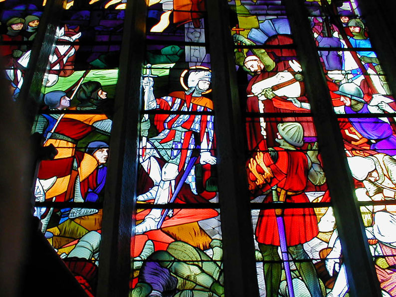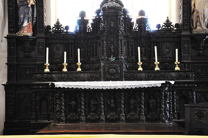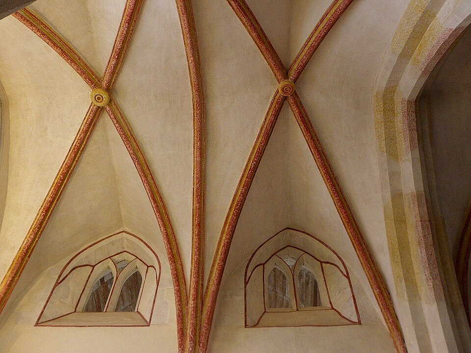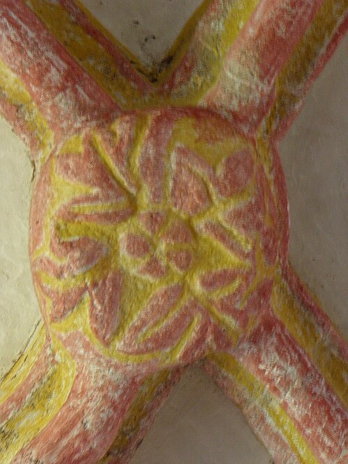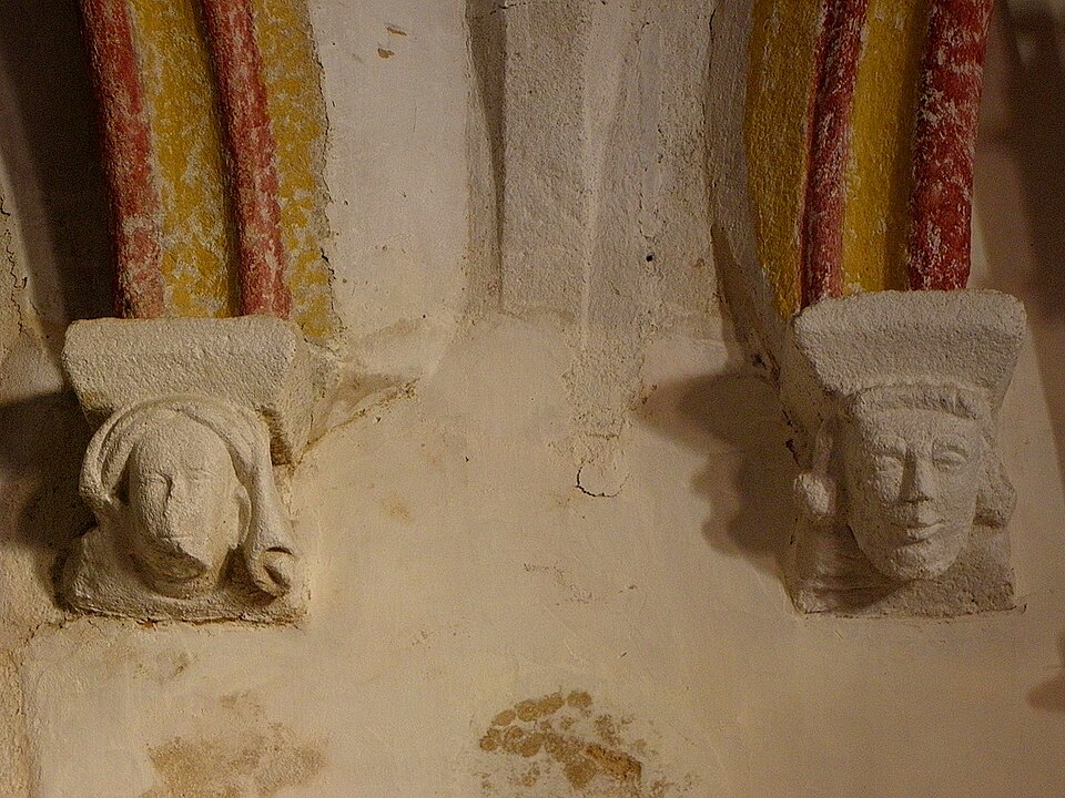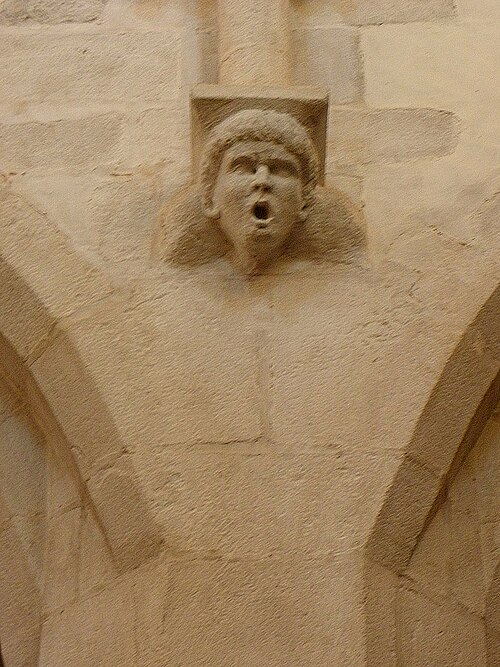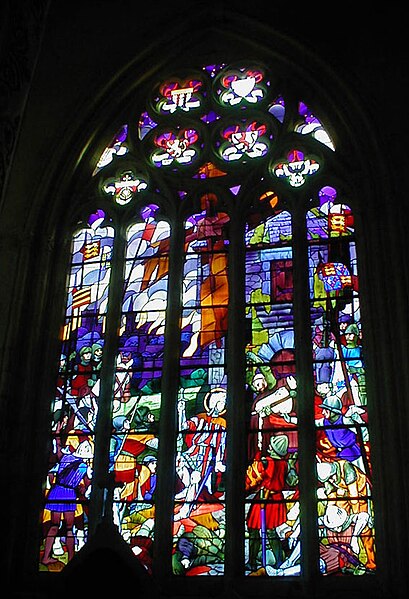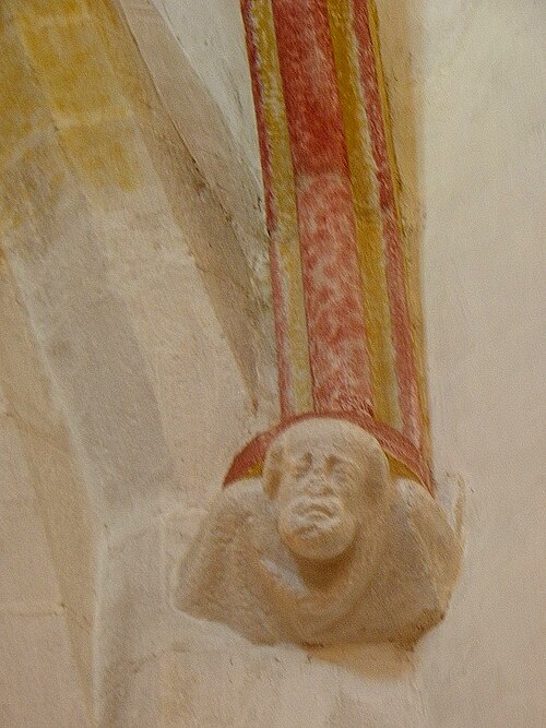 L'église Sainte-Catherine, église catholique de La Roche-Derrien (Côtes-d'Armor, France), illustre la transition locale du roman au gothique. Sa construction commence à la fin du XIIIe siècle et l'édifice conserve plusieurs éléments de cette phase, notamment la chapelle des fonts, la première travée de la nef et des vestiges du porche ouest. Après la bataille de 1347, l'église est très endommagée puis partiellement reconstruite, peut-être par le même maître d'œuvre que celui de la cathédrale de Tréguier, comme le suggèrent des éléments communs : décor de chapiteaux, frise sous la corniche du clocher, voûtes très surbaissées et profils des arcs d'ogives. En 1376, Rolland de Kersaliou et Meance Toupin, seigneur et dame de Kersaliou, font édifier au sud du chœur une grande chapelle ; à la même époque une petite chapelle est aménagée dans le bas-côté nord, avec enfeu et tombe. Une bulle pontificale de 1389 mentionne que l'église nécessite d'importantes réparations ; la partie centrale de la façade ouest, la tour du clocher et le porche sud semblent relever de cette campagne. Après la destruction du château et des remparts par Jean IV en 1394, le connétable Olivier de Clisson fait fortifier l'église, transformations dont certaines sont encore visibles aujourd'hui. Ces aménagements comprennent la maçonnerie renforcée à l'angle nord-est avec un escalier intégré et percé de meurtrières, ainsi que l'agrandissement d'une chapelle à l'angle nord-ouest pour en faire un corps de garde ou un magasin. En 1793 la flèche est détruite par la foudre, les verrières sont brisées et la maçonnerie éprouvée ; l'église fait l'objet d'une restauration totale en 1820, au cours de laquelle la flèche est rebâtie et une nouvelle sacristie édifiée contre le chevet. Le clocher est de nouveau frappé par la foudre en 1833 puis réparé. Une restauration menée en 1890 entraîne la refonte complète du pignon du porche sud, et la chapelle nord du Rosaire est reconstruite en 1894 sur ses anciennes fondations. En 1927, la maîtresse-vitre de la chapelle sud reçoit un vitrail représentant la bataille de La Roche-Derrien. Au revers de la façade occidentale, préservés derrière l'orgue installé au XIXe siècle, subsistent des vestiges de polychromie du XIVe siècle. L'édifice a été classé au titre des monuments historiques en 1913. On peut également se reporter aux fonts baptismaux de La Roche-Derrien, aux peintures murales locales et aux listes départementales des monuments historiques et des églises des Côtes-d'Armor pour compléter la documentation sur ce patrimoine.