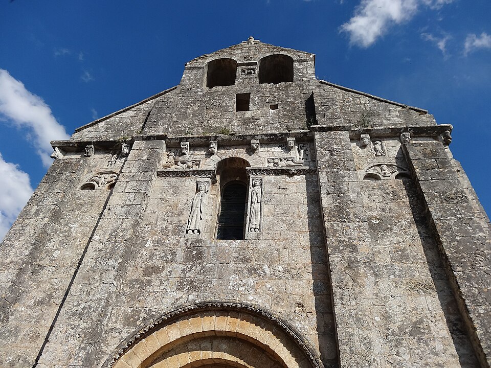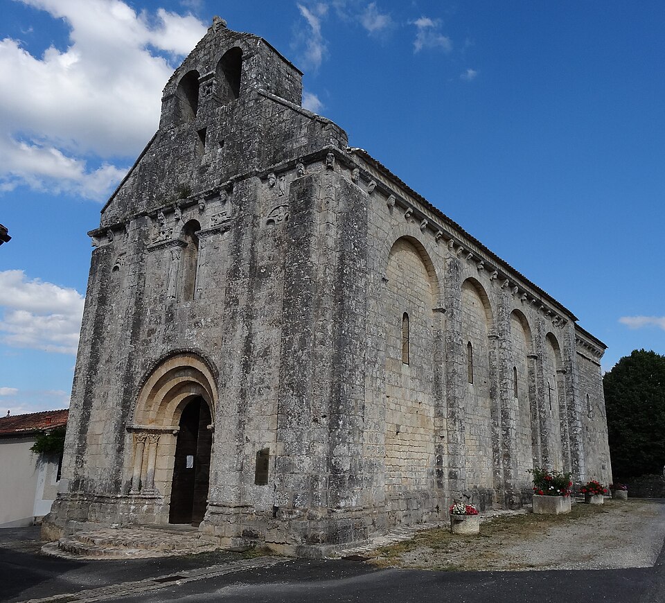 L'église Sainte-Colombe, située dans la commune de Sainte-Colombe (Charente), est un édifice religieux de style roman. Elle se compose d'une nef et d'un faux carré, couverts d'un lambris qui remplace leurs berceaux primitifs, et d'une abside en cul-de-four. Les murs de la nef et du faux carré ont été partiellement remontés. La nef est ornée de colonnes et de chapiteaux, certains sculptés représentant sainte Colombe et saint Pierre, et d'autres décorés de feuillages et d'animaux. La façade est surmontée d'un pignon portant un clocher-arcade à deux ouvertures ; la baie médiane est encadrée par deux statues-colonnes. Au-dessus du bandeau qui sert d'imposte à la fenêtre figurent deux animaux ailés couchés, un lion et un taureau. La division tripartite de l'édifice est marquée par des contreforts d'angles et par des pilastres encadrant le portail. Le chevet est couvert de lauzes. L'édifice est classé au titre des monuments historiques en 1973.