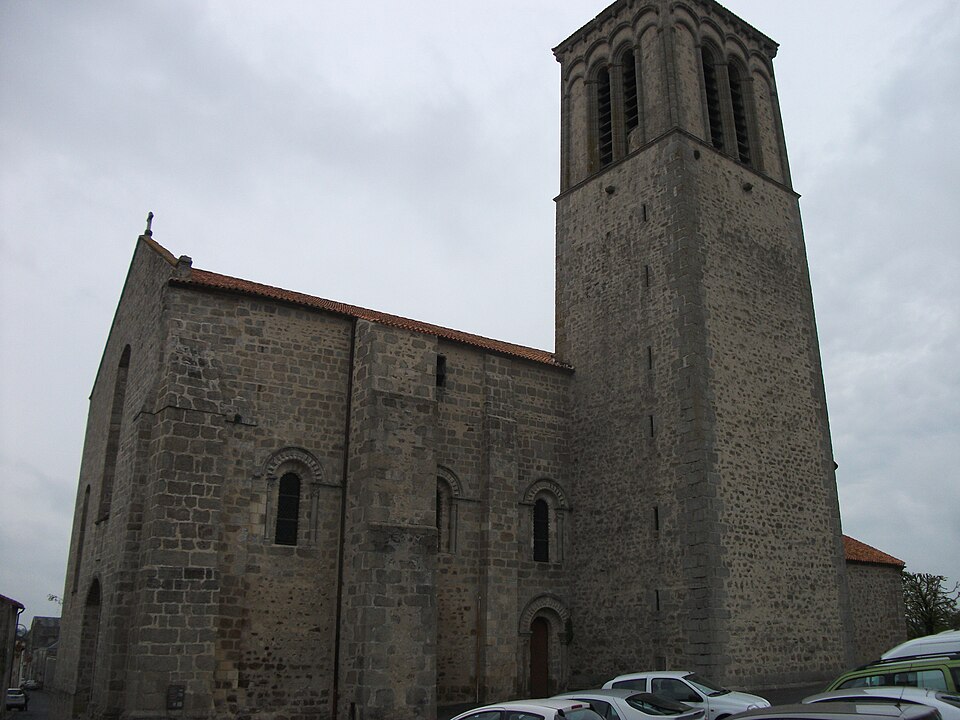 L'église Sainte-Croix se situe à Parthenay, dans le département des Deux-Sèvres. Elle trouve son origine dans une relique de la Vraie Croix rapportée du royaume d'Israël, inventoriée encore en 1579, et sa fondation est attribuée à Ebbon et à son frère Gelduin, seigneurs de Parthenay. Connue avant 1090, l'église primitive, confiée à un chapitre de sept chanoines, remonte au XIe siècle. Une nouvelle église fut vraisemblablement édifiée vers 1140, puis agrandie à la fin du XIIe siècle, époque où fut réalisée une coupole ovoïde de style Plantagenêt à la croisée du transept et où le chœur fut refait. Englobée ultérieurement dans l'enceinte fortifiée de la citadelle, elle fut transformée en collégiale au début du XIVe siècle et devint la nécropole de la famille Larchevêque. Le clocher actuel, élevé en 1457, se détache en haute tour carrée au-dessus de la masse rectangulaire de l'édifice ; sa flèche fut toutefois abattue par un ouragan en 1711, après avoir déjà été fragilisée par un séisme. Au XVIIe siècle, Charles-Armand de La Meilleraye, duc de Mazarin, fit entreprendre des travaux dans le chœur ; entre 1665 et 1669 l'architecte Cornerse réalisa l'allongement des deux absidioles, leur mise en communication avec l'abside axiale, la construction d'une sacristie et divers percements et obstructions d'ouvertures, ainsi que l'installation d'un retable monumental. La façade ouest a été reconstruite au XVIIIe siècle ; les sources évoquent l'emploi de pierres du château et donnent des dates de reconstruction situées soit en 1750 soit en 1781. D'importants travaux de restauration eurent lieu au milieu du XIXe siècle (1852-1855) ; en 1853 la suppression du retable révéla dans l'abside deux enfeus contenant des gisants mutilés, restaurés en 1880 et classés au titre des monuments historiques en 1912. L'édifice présente une nef voûtée en berceau au cintre brisé, flanquée de bas-côtés voûtés en demi-berceaux sur doubleaux en arc brisé et surmontés d'un mur-diaphragme ; les croisillons du transept sont également voûtés en berceau. Le chœur, plus étroit et plus bas que la nef, est cantonné de deux chapelles basses ; la façade comporte une porte aux voussures sculptées et des baies romanes sont percées dans le mur goutterot sud. Parmi les éléments remarquables figurent le chevet, la nef et les deux gisants de marbre peint placés dans l'abside, représentant Guillaume VII L'Archevêque, seigneur de Parthenay, et son épouse Jeanne de Mathefelon. L'église Sainte-Croix est classée au titre des monuments historiques.