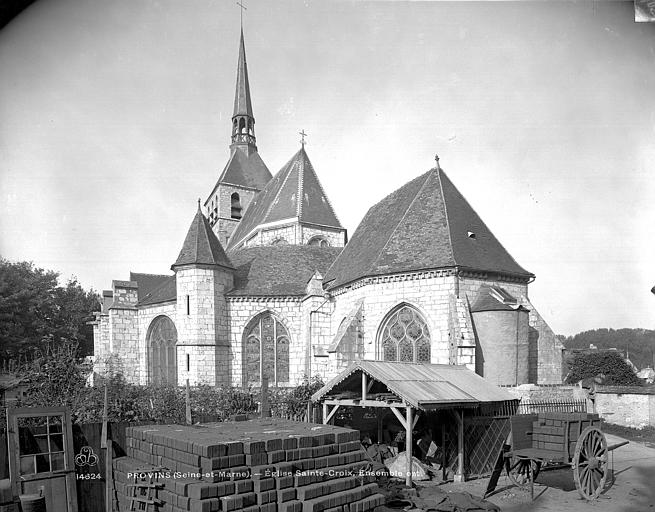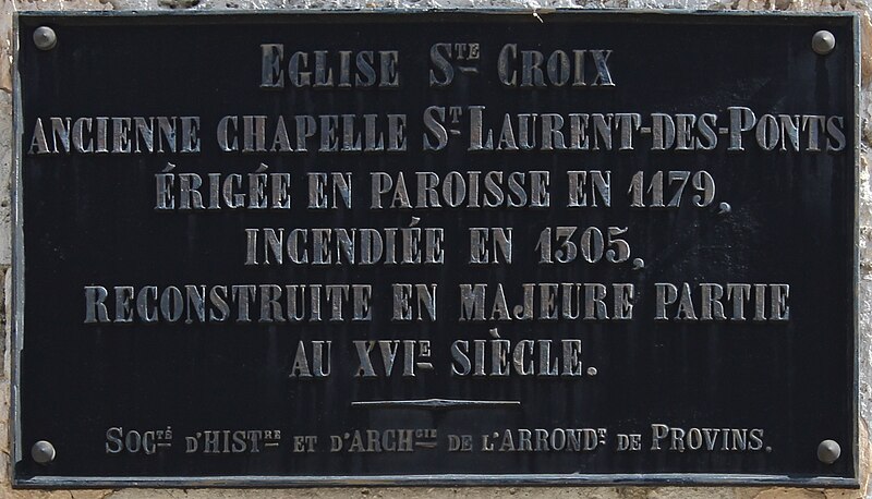 L'église Sainte‑Croix de Provins, située dans la ville basse de Provins en Seine‑et‑Marne, doit son nom à un fragment de la Sainte Croix que Thibaud IV de Champagne aurait rapporté de Jérusalem. Construite entre les XIIe et XVIe siècles, elle est classée au titre des monuments historiques depuis le 15 janvier 1918. Édifiée sur des marais, elle repose sur des fondations en bois ; après l'assèchement du marais, ces anciennes fondations se désagrègent et l'édifice s'enfonce profondément dans le sol. Des études et descriptions de l'édifice existent, notamment dans Les monuments de Seine‑et‑Marne d'Amédée Aufauvre et Charles Fichot (1858), dans Provins les monuments religieux de Geneviève Aliette de Rohan‑Chabot (1939) et dans l'article de Françoise Perrot consacré aux vitraux de Sainte‑Croix (Provins et sa région, 1987). Des ressources visuelles et documentaires sont aussi consultables, par exemple sur Wikimedia Commons et dans diverses bases et portails consacrés au patrimoine religieux et à l'architecture (Clochers de France, GCatholic.org, Observatoire du patrimoine religieux, Mérimée). Voir également la liste des monuments historiques de Provins.