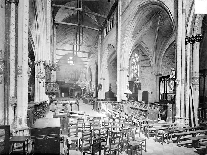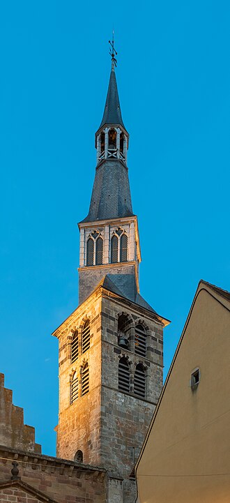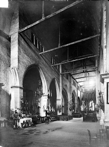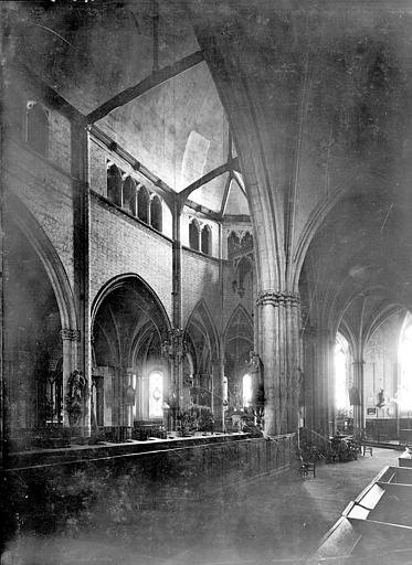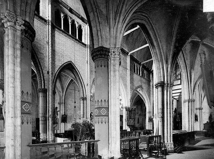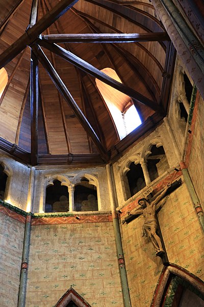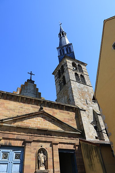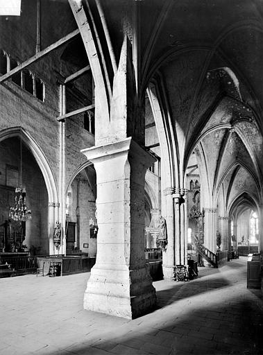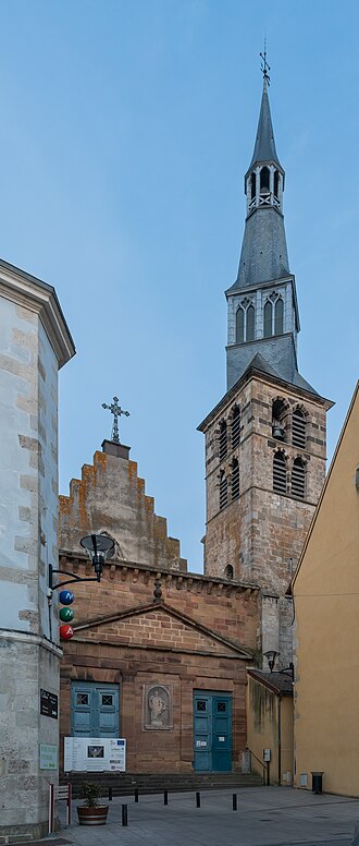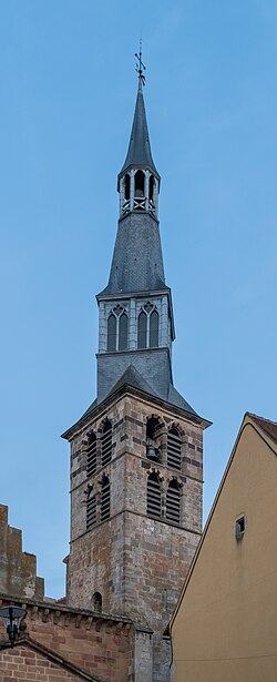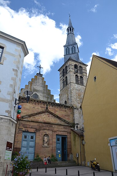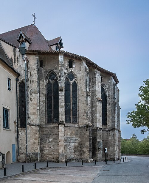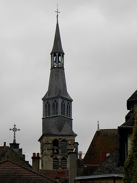 L'église Sainte-Croix, paroissiale et située à Saint-Pourçain-sur-Sioule (Allier), est classée Monument historique en 1875. Elle est une ancienne église priorale rattachée à un prieuré bénédictin aujourd'hui disparu. Une portion romane de la nef, comprenant le porche d'entrée et les deux murs des bas-côtés jusqu'à la quatrième travée, appartient à l'édifice primitif et daterait peut-être du début du XIIe siècle. Le reste de l'édifice relève du XIIIe siècle : on y trouve la suite de la nef, le transept, le chœur, le déambulatoire et les cinq chapelles absidiales qui rayonnent autour du chœur. Les deux absidioles nord, de plan circulaire, paraissent un peu antérieures au reste de l'abside. La construction du XIIIe siècle s'insère dans l'ancienne nef romane. Le transept nord comporte une porte de sortie et une tourelle donnant accès aux combles des bas-côtés. Au sud, le long des bas-côtés, subsistent quatre travées d'un cloître daté du XVe siècle. Le bas-côté, le transept, les absidioles et le déambulatoire du chœur sont voûtés d'ogives. La nef et le chœur sont couverts par une charpente apparente qui semble dater du XVe siècle. Parmi les éléments visibles figurent la charpente et la façade extérieures, ainsi que des représentations comme un Christ en Croix et une statue du Cœur Sacré de Jésus.
