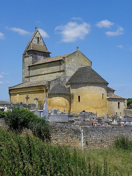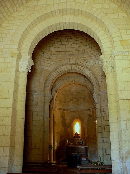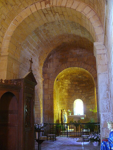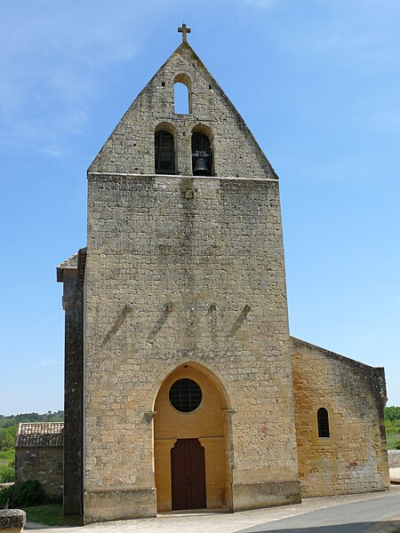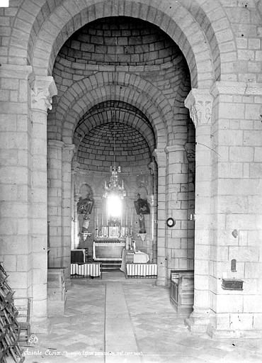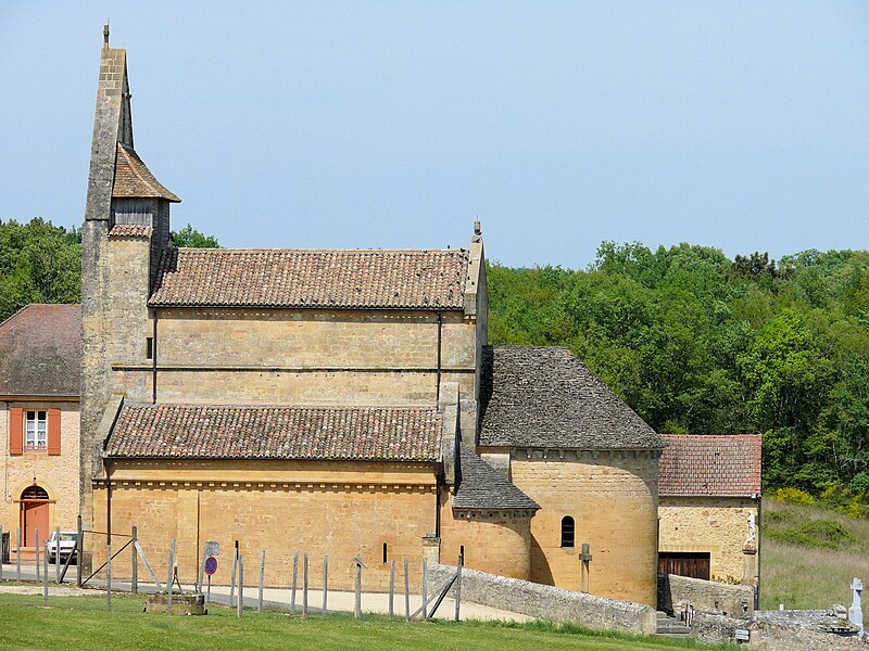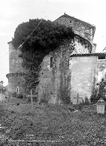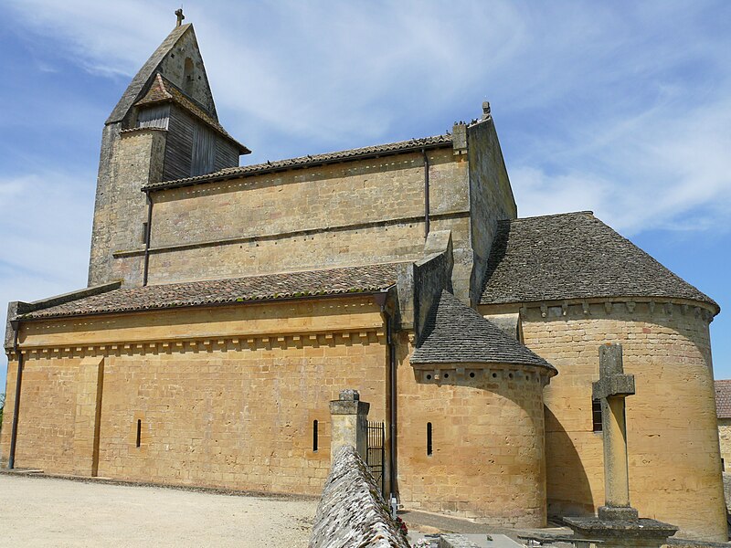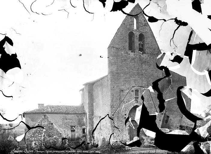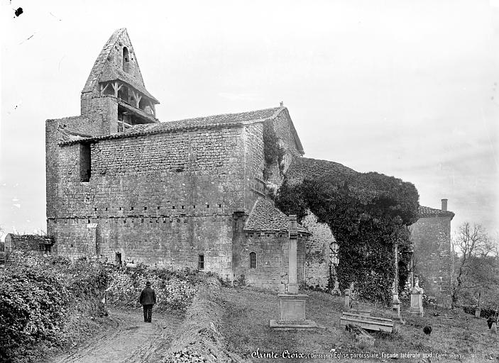 L'église Sainte-Croix, située à Sainte-Croix en Dordogne, est un édifice roman du XIIe siècle. Elle présente une nef principale flanquée d'un bas-côté, couverte d'une voûte en berceau et d'une coupole sur pendentifs, et se termine par une abside en cul-de-four. Le chœur et l'abside sont ornés d'arcatures reposant sur des colonnes à chapiteaux historiés. À l'extérieur, les murs ont été surélevés; seules les deux absides rondes conservent encore la couverture en pierre posée directement sur les voûtes, qui recouvrait sans doute primitivement l'ensemble de l'édifice. L'église constitue le seul témoignage subsistant d'un édifice à coupole dans le canton. La sculpture romane se manifeste par des modillons aux absides et au chevet, ainsi que par des chapiteaux à l'intérieur, dont un chapiteau historié représentant Adam et Ève au sud du faux-transept. D'importants travaux de consolidation et de restauration ont été entrepris en 1898 et 1906, avec remise en état de la façade occidentale et du pignon est de la nef. L'édifice a été classé au titre des monuments historiques en 1886.