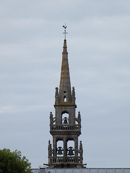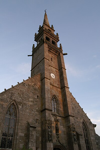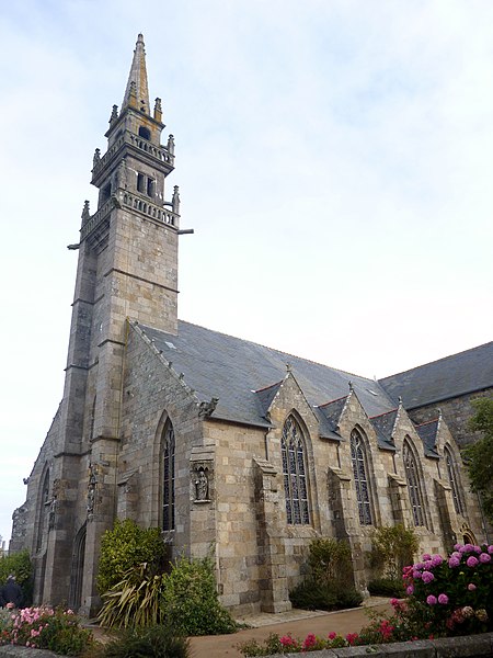 L'église Sainte‑Croix, réalisée au milieu du XIXe siècle, a été construite entre 1856 et 1859 d'après les plans de l'architecte diocésain Joseph Bigot et par l'entrepreneur Jézéquel. La façade occidentale porte la date de 1856. L'édifice, élevé avec des matériaux issus de la chapelle primitive Saint‑Christophe et de la chapelle de Lochrist datés des XVe, XVIe et XVIIe siècles, forme un ensemble homogène de style néogothique flamboyant. Il abrite le tombeau de Michel de Nobletz, célèbre prédicateur en Basse‑Bretagne au XVIIe siècle. Les vitraux se répartissent en trois ensembles : la maîtresse‑vitre du chœur rassemblant des vestiges du XVIe siècle provenant de l'église de Lochrist, deux verrières hagiographiques de Robert Micheau‑Vernez réalisées en 1930‑1932, et douze vitraux conçus par le peintre‑verrier Jacques Bony en 1960 et 1971.