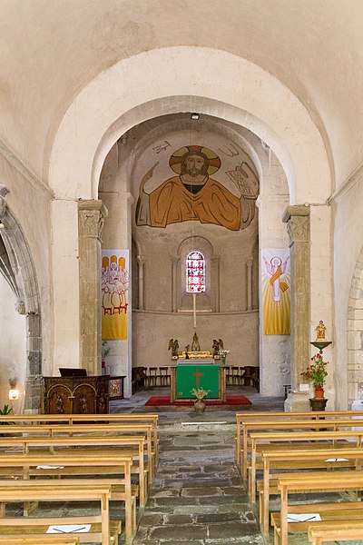Édification de l'église en style roman avec nef et chœur.