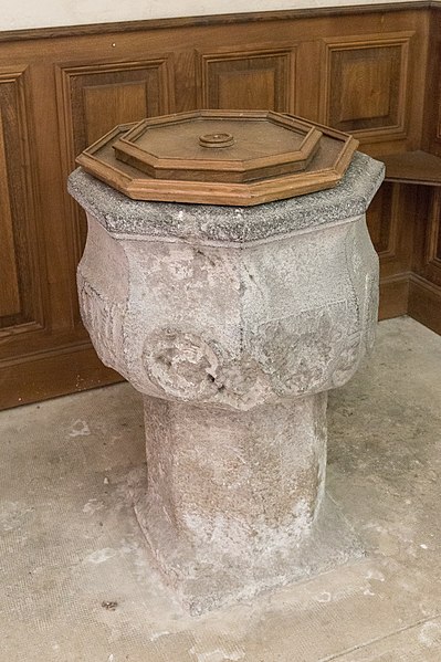 Construction des bas-côtés voûtés d'ogives et des fonts baptismaux.