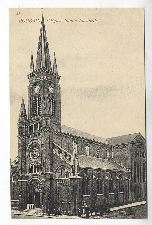L'église Sainte-Élisabeth est une église catholique située 115 rue de Lannoy à Roubaix (Nord) ; elle dépend du diocèse de Lille et de la paroisse de la Fraternité. Inscrite à l'inventaire supplémentaire des monuments historiques en 2014, elle a été édifiée dans la seconde moitié du XIXe siècle lors de l'expansion économique et démographique de la ville. Le terrain fut donné en 1858 par Madame Delaoutre, née Decrême, pour édifier une église avec une école ; la proposition fut approuvée par le conseil municipal en 1859 et la première pierre a été bénie le 3 juin 1860. Conçue par l'architecte municipal Théodore Lepers et bâtie en brique, l'église fut ouverte au culte en 1863. Son esthétique combine des références romanes, gothiques et byzantines : l'extérieur est de style néo-roman tandis que l'intérieur se rattache au romano-byzantin. Elle est dédiée à sainte Élisabeth de Hongrie, patronne d'Isabeau de Roubaix, fondatrice de l'hôpital Sainte-Élisabeth en 1488. L'édifice devint l'église paroissiale des quartiers du Tilleul, du Pile, des Trois Ponts et de la Potennerie. La flèche, posée en 1877, a été démolie en 1972 par crainte des chutes d'ardoises. En raison du climat anticlérical du début du XXe siècle, l'église ne fut consacrée que le 29 juin 1933 par Mgr Jansoone, évêque auxiliaire de Lille. De plan en croix latine, l'édifice présente une façade en briques avec encorbellements de pierre calcaire et un haut clocher carré au-dessus du portail, flanqué de tourelles hexagonales ; le tympan représente le Christ trônant entouré de deux anges agenouillés portant un encensoir. L'intérieur comprend une large nef et deux bas-côtés séparés par de lourdes colonnes aux chapiteaux composites. L'orgue de tribune, posé en 1885, provient de la maison Schyven de Bruxelles ; son buffet est l'œuvre de Modeste Verlinden. Le maître-autel, riche et en marbre blanc, de style néo-roman et daté de 1897, a été réalisé d'après les dessins de Gustave Pattein pour remplacer un ancien autel de chêne ; il s'accompagne d'un banc de communion en marbre blanc offert cinq ans plus tôt par la veuve de l'industriel Alfred Motte. Pattein a également réalisé un confessionnal original qui supporte un orgue de chœur. L'intérieur est décoré de copies de tableaux de maîtres et d'œuvres de peintres roubaisiens ; l'église conserve par ailleurs un mobilier complet et des vitraux de belle facture. Témoignage d'une période cruciale de l'histoire industrielle de Roubaix, Sainte-Élisabeth illustre les transformations urbaines et culturelles de la seconde moitié du XIXe siècle.
