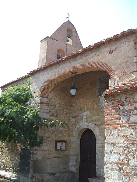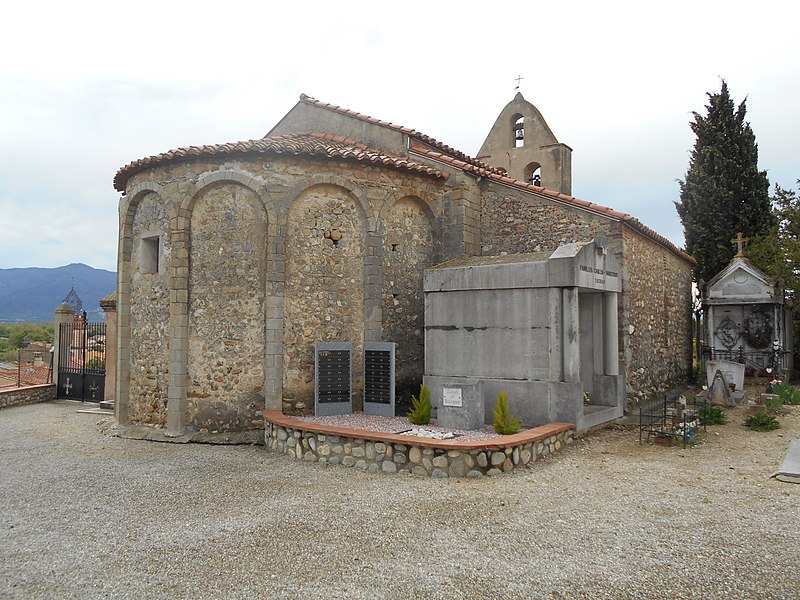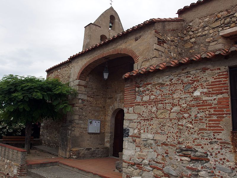 L'église paroissiale Sainte-Eugénie d'Ortaffa, située dans les Pyrénées-Orientales, est d'origine romane et a été remaniée ultérieurement. Sa construction remonte vraisemblablement au XIIe siècle et la nef ainsi que l'abside conservent des éléments romans caractéristiques : une fenêtre en plein cintre sur le mur occidental et des arcatures sur l'abside semi-circulaire. Les parties romanes sont en granit, tandis que les adjonctions modernes ont été réalisées en brique et en pierre. L'entrée sud s'ouvre par un portail en plein cintre appareillé de petits claveaux et est précédée d'un porche en place, pourvu de banquettes de pierre. Ce porche paraît ancien, à l'exception de l'arc d'entrée en briques, qui a probablement remplacé une poutre soutenant un simple auvent. Le mur occidental est surmonté d'un clocher-arcade à trois baies. Une chapelle du XVIIe siècle a été ajoutée à l'édifice. L'église se dresse à côté du cimetière, sur une petite colline dominant le village et faisant face au château. L'extérieur de l'abside, élément architectural remarquable, a été inscrit à l'inventaire en 1964. L'édifice est documenté dans la bibliographie spécialisée et signalé dans plusieurs notices et ressources en ligne, notamment la base Mérimée (notice PA00104061), Clochers de France et le site de la mairie d'Ortaffa. Photographies de la façade ouest et du porche permettent d'en apprécier les façades et les détails.