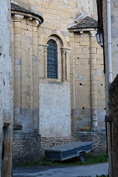 L'église Sainte-Eulalie de Sainte-Eulalie-d'Olt se situe au cœur du village, dans le quart nord-est du département de l'Aveyron, en région Occitanie. Elle est protégée au titre des monuments historiques, classée par arrêté du 10 septembre 1923. L'édifice relève de deux grandes périodes : une partie orientale romane et des travées occidentales remaniées au début du XVIe siècle. Le chœur roman, sans doute de la fin du XIe siècle, présente un cul-de-four, un déambulatoire voûté en berceau et trois chapelles rayonnantes ; la sacristie et la dernière travée de la nef, qui porte le clocher, appartiennent aussi à cette phase. Les deux premières travées de la nef et les bas-côtés datent du début du XVIe siècle, reflet d'une reconstruction après un incendie probablement lié aux guerres de Religion. Le clocher remonte au XIIe siècle. Le chevet conserve des colonnettes monolithes aux chapiteaux sobrement sculptés ; la partie basse du rond-point est à sept pans reposant sur six colonnes, et une zone pentagonale décorée d'arcatures séparée du cul-de-four relie ces éléments. Le déambulatoire a été exhaussé par une galerie de défense, probablement réalisée à l'époque de l'occupation anglaise, éclairée par des meurtrières ; un triforium percé de meurtrières surmonte cet ensemble. L'édifice associe le roman languedocien du chœur et de la travée qui lui est attachée au gothique des deux travées occidentales de la nef et du portail. La façade ouest s'ouvre par un portail du XVIe siècle surmonté d'un tympan abritant une Vierge à l'Enfant ; au-dessus figurent deux blasons, dont celui du cardinal Georges d'Armagnac, évêque de Rodez, qui fit agrandir l'église en 1530. La nef, longue de trois travées et flanquée de collatéraux, est couverte par un berceau dont le voûtement roman a pu être conservé lors de la restauration du XVIe siècle. Le rond-point et le déambulatoire donnent accès aux chapelles contenant les tombeaux des prêtres de Sainte-Eulalie et des seigneurs de Curières. Parmi les éléments remarquables du chevet figurent les chapiteaux, les modillons et la corniche supportant la toiture. Le mobilier comprend deux objets classés : une cloche en bronze datée de 1725 (classée en 1944) et une croix de procession en argent des XVIIIe–XIXe siècles (classée en 1990). On y trouve également une pierre d'autel du Xe siècle, consacrée vers l'an 920 par l'évêque Deusdedit, une statue polychrome de sainte Eulalie, un retable, les fonts baptismaux et deux épines de la Sainte Couronne, l'une des reliques que l'on porte en procession chaque année le deuxième dimanche de juillet. Parmi les parties à observer figurent la façade occidentale, le portail, le chœur, le chevet, ainsi que les chapiteaux et modillons du chevet.
