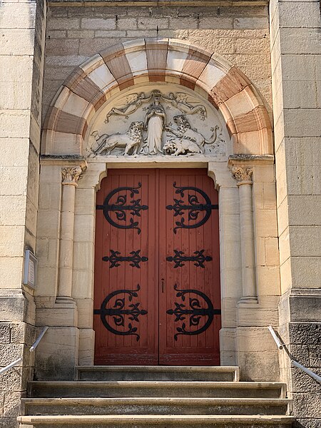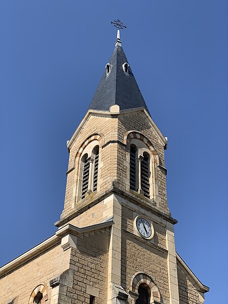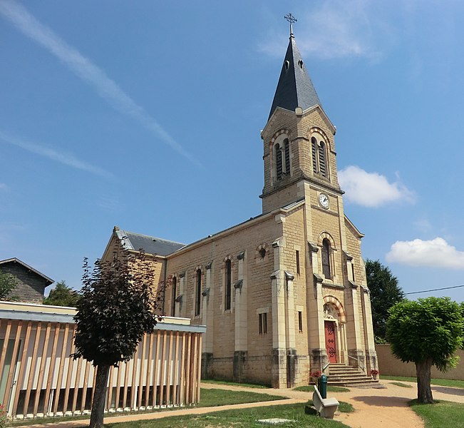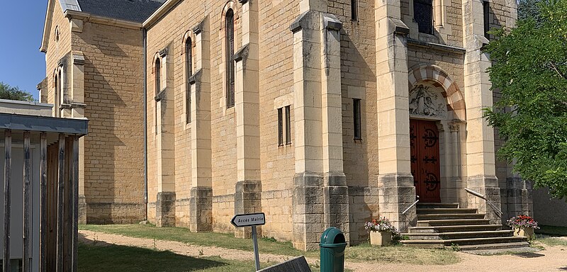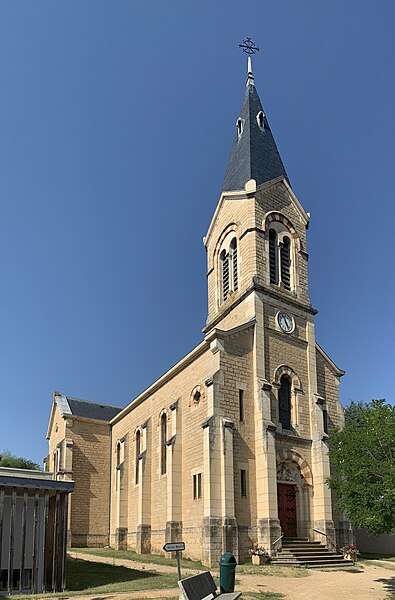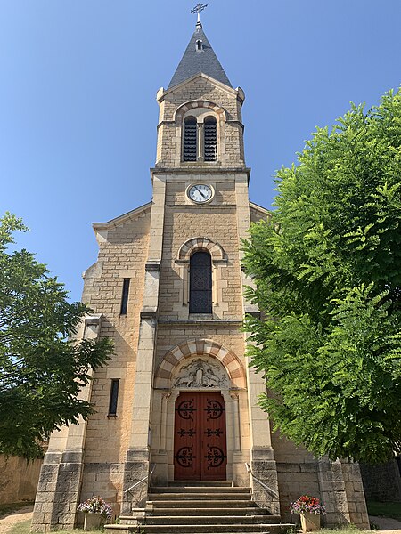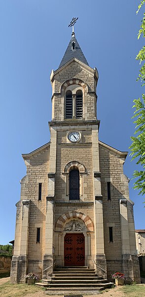 L'église Sainte‑Euphémie, située à Sainte‑Euphémie dans l'Ain, est un édifice néo‑médiéval bâti dès 1874 et achevé l'année suivante, orienté nord‑sud et conçu selon un plan en croix latine avec un chevet semi‑circulaire. L'accès se fait par une tour‑porche ouvrant sur une avant‑nef qui abrite l'espace baptismal éclairé de vitraux. L'intérieur est décoré de menuiseries et de peintures au pochoir, une partie de la décoration ayant été réalisée par Claudius Barriot. Le chœur, de style néo‑byzantin, alterne les tons bleu, doré et blanc. L'ensemble se distingue par son homogénéité et le soin apporté aux détails architecturaux et décoratifs. L'édifice a été conçu par l'architecte Jean‑Marie‑Émile Thoubillon et une partie des matériaux provient de l'ancienne église, détruite en 1874 et située 50 mètres à l'ouest. L'église et sa parcelle d'assiette sont inscrites au titre des Monuments historiques depuis le 14 juin 2012 ; le presbytère, datant du XVIIe siècle, fait l'objet d'une fiche de l'Inventaire général du patrimoine culturel.