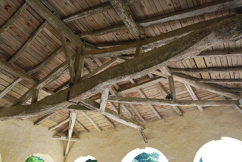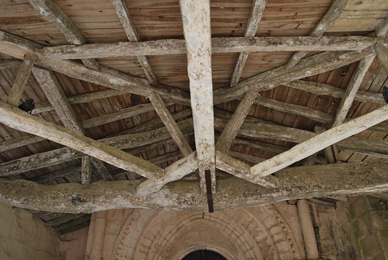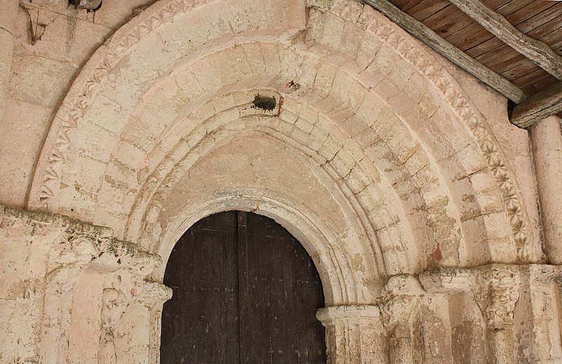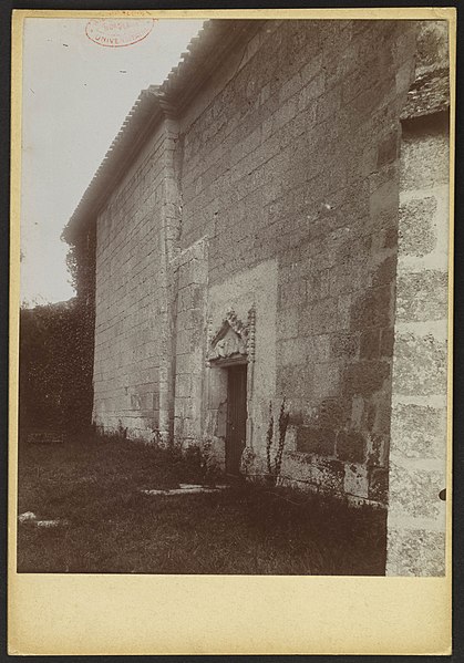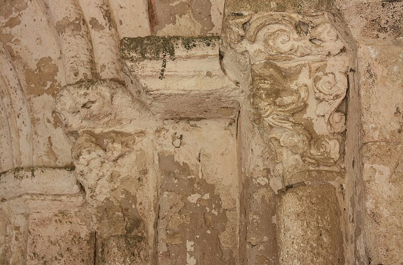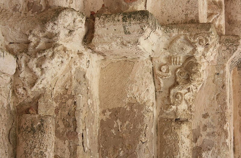 Porte percée dans le mur nord avec des sculptures d'anges.
