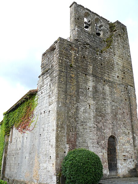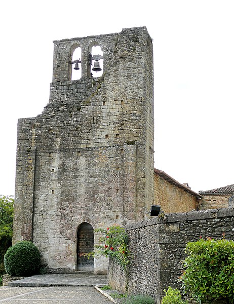 L'église se compose d'une nef sans travée et d'un chœur reconstruit, fermé par un chevet plat. La voûte a été refaite en lambris. Le chœur, bâti postérieurement, est dévié vers la droite par rapport à la nef ; la partie sud conservée suggère qu'il était à l'origine de plan rectangulaire. Le portail occidental, en arc en tiers point, a remplacé un ancien portail dont la trace de l'arc en plein cintre subsiste sur le mur nord. Le mur goutterot, par son appareil, témoigne que l'édifice a été très endommagé durant les guerres de Cent Ans. Les pierres portent les marques d'un incendie particulièrement violent. La couverture a été abaissée et, sous un vestige du solin de la toiture primitive, apparaît la porte d'accès aux combles, qui ouvrait sur un escalier probablement monté dans l'un des côtés du clocher.
