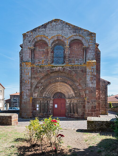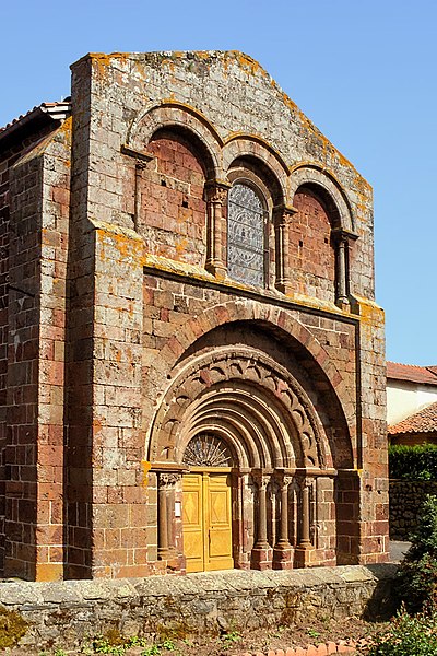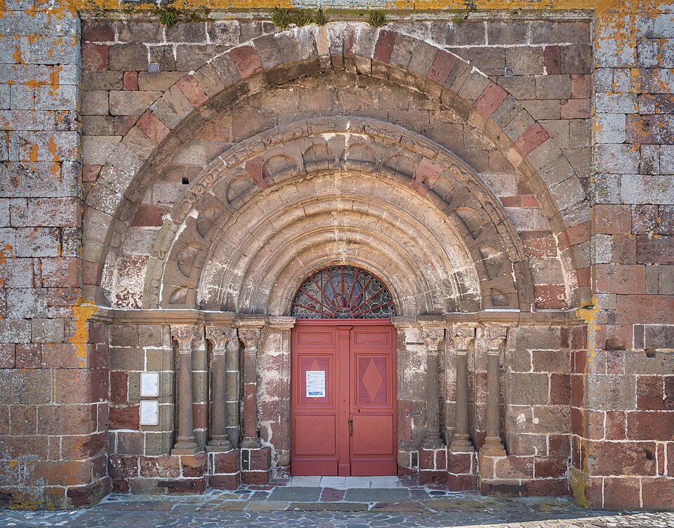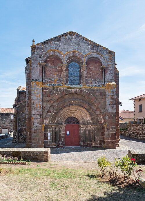 Construite en pierre de taille volcanique assemblée en grand appareil, l'église présente une façade occidentale d'un grand intérêt pour la richesse de son ornementation, rare en Velay. Le porche montre des colonnettes tronconiques avec astragales en saillie et des chapiteaux soignés. Au‑dessus, une large archivolte décorée de lobes est entourée d'une moulure ornée d'animaux et de personnages. Le portail roman, surmonté d'un puissant arc de décharge, est assorti d'une voussure polylobée dont le traitement sculpté retient l'attention.