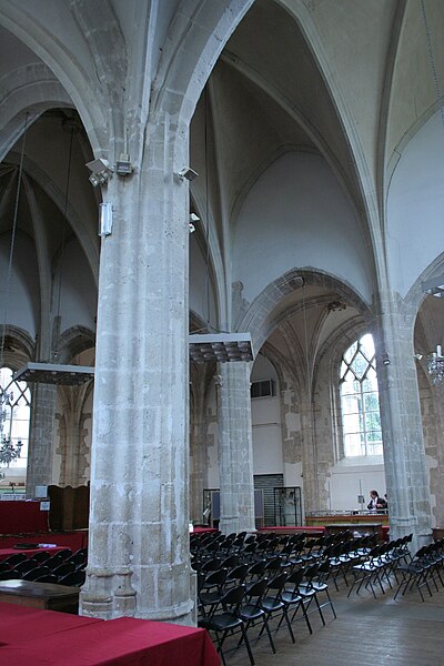 L'ancienne église Sainte-Foy est située à Chartres, préfecture d'Eure-et-Loir en région Centre-Val de Loire, à l'intérieur des boulevards et à proximité de la place du Général-de-Gaulle. Le portail s'ouvre sur la rue Famin, le chevet donne sur la place Sainte-Foy et l'édifice est bordé par la rue Collin-d'Harleville ; entre portail et chevet se trouve le square Jean-Lelièvre. À l'origine chapelle hors-les-murs, Sainte-Foy était fréquentée au XIe siècle par Fulbert de Chartres et ses disciples ; Bernard, maître de l'école épiscopale d'Angers, évoque dans une lettre son habitude de se rendre dans « la petite chapelle de sainte Foy » pour écrire ou prier. La chapelle fut close au XIIe siècle et dotée d'une paroisse. Un dessin de Louis Boudan a conservé le relevé d'un ancien vitrail de la « chapelle de la Communion derrière le chœur » représentant Florent d'Illiers (1400-1475), chevalier baron du lieu. En 1793, l'église fut vendue comme bien national au citoyen Morin, se disant architecte, en vue d'y établir un théâtre pour remplacer la salle de spectacle de la place du Cygne. Les quatre premières travées de la nef furent alors démolies et l'édifice fermé par un mur-diaphragme ; dans le chevet on aménagea une salle elliptique avec parquet de bal, scène et loges, adossée à un bâtiment de service servant de façade au théâtre. Le théâtre a fonctionné entre 1797 et 1806. Le bâtiment de service a été démoli en 1971, tandis que le portail roman du XIIe siècle a été conservé ; la partie centrale de l'ancien portail en pierre de Berchères a été mise au jour lors de travaux de ravalement autour de la porte d'une maison où l'ancienne façade avait été incorporée. Le portail marque depuis 1993 l'extrémité du square Jean-Lelièvre, aménagé à l'emplacement de la nef. Subsistent aujourd'hui le chevet daté du XVe siècle et le portail roman, ainsi que des éléments tels qu'un chapiteau sculpté, le revers du portail, une fenêtre à remplages du XVe siècle pourvue d'une verrière moderne et le mur-diaphragme de la fin du XVIIIe siècle. Le chœur du XVe siècle, clos par une façade moderne, a été aménagé pour accueillir une salle de conférence ; il est également signalé que le chevet sert actuellement de salle des ventes. Les vestiges du portail font l'objet d'un classement au titre des monuments historiques par arrêté du 28 décembre 1937.