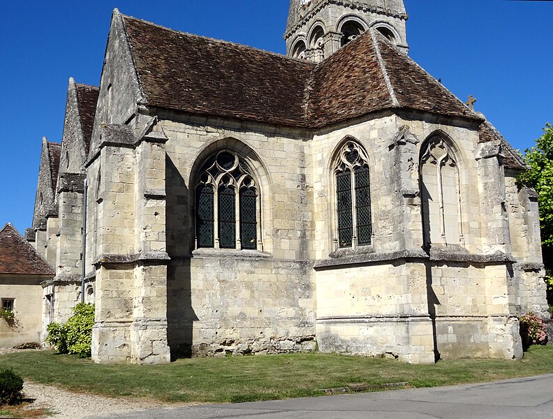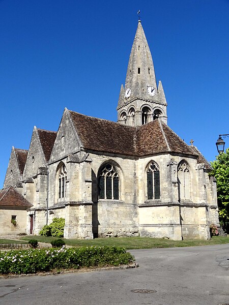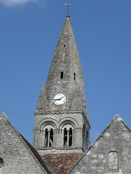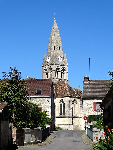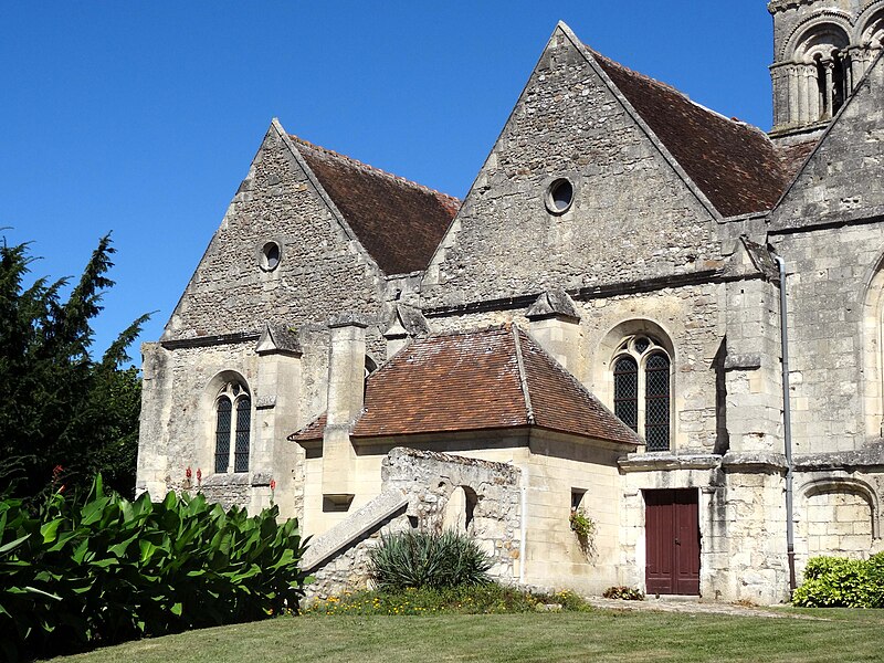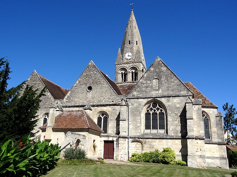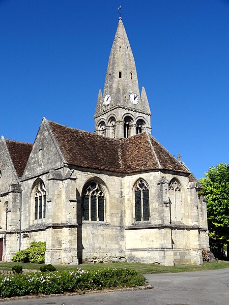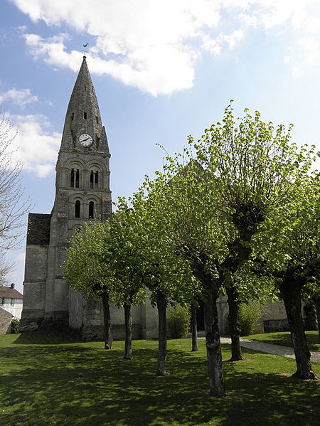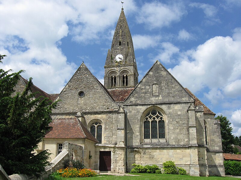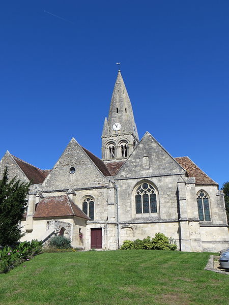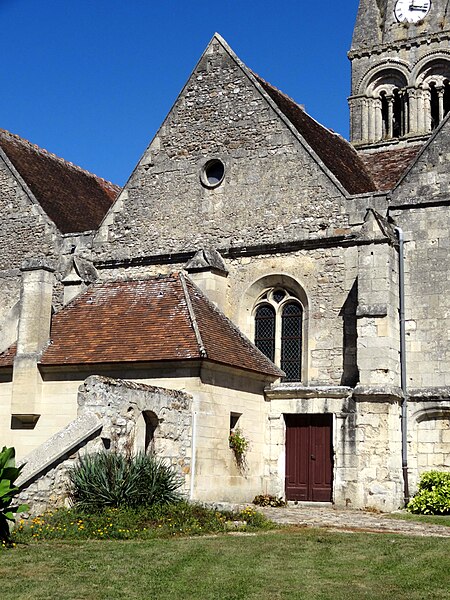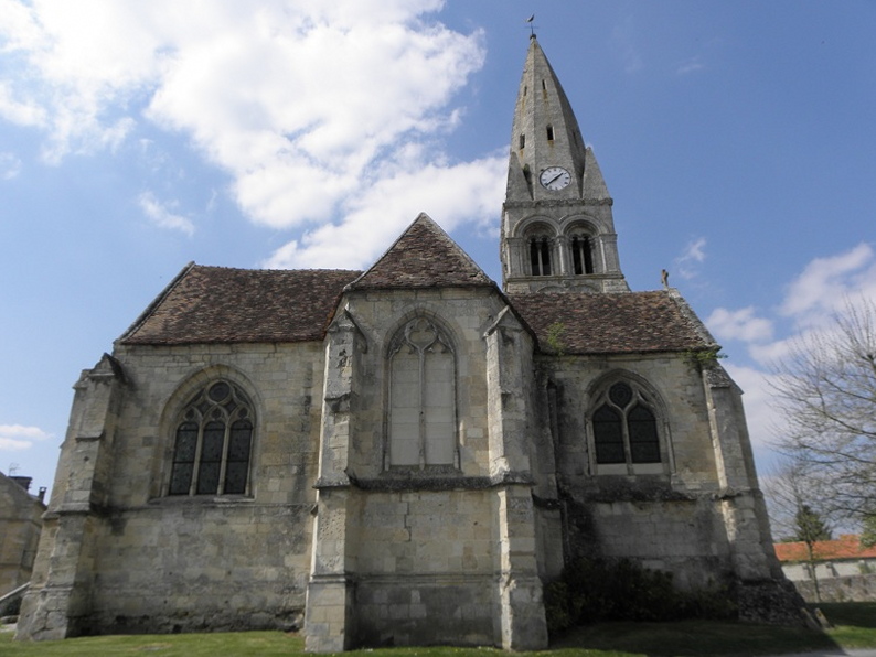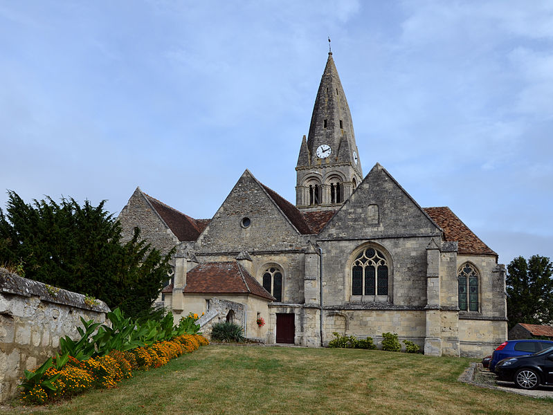 L’église Sainte‑Geneviève de Marolles (Oise) est une paroisse catholique bâtie au début du XIIe siècle et classée monument historique par arrêté du 15 janvier 1920. Elle a été édifiée dans les années 1130 par un atelier venu de Normandie et présente un roman tardif qui introduit déjà l’arc en tiers‑point et la voûte d’ogives, principalement visible à la croisée du transept. L’intérieur réserve une grande sobriété pour la nef, tandis que l’extérieur fut richement décoré : archivolte du portail occidental, corniches et ornements des fenêtres, aujourd’hui surtout lisibles depuis les bas‑côtés. Le principal vestige des années 1130 est l’imposant clocher roman à trois étages de baies surmonté d’une haute flèche octogonale en pierre, considéré comme l’un des plus beaux du département. Les élévations extérieures sont pour l’essentiel gothiques, notamment flamboyantes, en raison d’importantes campagnes de remaniement : reconstruction du croisillon nord au cours des années 1240, puis, au XVIe siècle, remplacement du chœur, du croisillon sud et du bas‑côté sud dont le voûtement resta inachevé. La voûte romane du carré du transept fut reprise en sous‑œuvre sur trois côtés, et les parties orientales conservent néanmoins une lecture cohérente. Sous l’Ancien Régime la cure relevait du doyenné de Coyolles, de l’archidiaconé de la Rivière et du diocèse de Soissons ; le collateur était le chapitre de Soissons par donation de l’évêque Josselin de Vierzy, et la dîme était partagée entre le curé, le séminaire diocésain, l’hôtel‑Dieu de Soissons et le commandeur de Moisy‑le‑Temple. À la Révolution, les découpages diocésains furent remaniés mais l’église dépend aujourd’hui de la paroisse Saint‑Félix de Valois à La Ferté‑Milon, où des messes dominicales anticipées sont célébrées irrégulièrement deux ou trois fois par an. Les travaux primordiaux des années 1130‑1140 concernent le portail occidental, la nef, le bas‑côté nord, la base du clocher et la croisée du transept ; l’étage de beffroi du clocher et sa flèche sont postérieurs et les piliers des grandes arcades du sud ont été retaillés. La campagne flamboyante du XVIe siècle a aussi intégré quelques éléments de vocabulaire Renaissance, en particulier dans l’élévation et le remplage des baies du bas‑côté sud. Après la Seconde Guerre mondiale l’édifice fut laissé dans un mauvais état — sacristie détruite et nombreuses fenêtres obstruées — puis restauré pour retrouver un état satisfaisant. Le plan est orienté et comprend une nef de quatre travées accompagnée de bas‑côtés inégaux, un transept aux deux croisillons reconstruits à des époques différentes et un chœur formé d’une courte travée droite et d’une abside à trois pans ; la base du clocher occupe la dernière travée du bas‑côté nord et la sacristie actuelle jouxte la troisième travée du bas‑côté sud. La nef n’a jamais été voûtée et montre un plafond plat en bois relié aux murs gouttereaux par des lambris en quart‑de‑cercle ; seules les quatre travées orientales sont couvertes d’ogives et la base du clocher est voûtée en berceau brisé perpendiculairement à l’axe de l’édifice. L’accès se fait par le portail occidental ou par le portail latéral de la quatrième travée du bas‑côté sud, le portail du croisillon sud étant condamné. La nef illustre la coexistence de traits archaïques et novateurs du XIIe siècle : grandes arcades en tiers‑point sans colonnettes à chapiteaux, piliers allongés munis d’impostes sculptées, arcades à simple rouleau et polychromie architecturale en tons d’ocre encore perceptible, surmontée au XVIe siècle de peintures d’apôtres. Les élévations nord et sud diffèrent par leurs proportions et leurs profils d’impostes, les fenêtres hautes ayant par ailleurs été partiellement occultées lors de la rehausse des toitures des bas‑côtés. La façade occidentale conserve surtout une triple archivolte romane, partiellement mutilée par le percement ultérieur d’un grand oculus aujourd’hui bouché ; les voussures présentent des décors d’influence normande, bâtons brisés et motifs en X, ainsi qu’un registre de têtes stylisées. Le clocher, situé à l’angle entre la nef et le croisillon nord, comporte trois étages de baies et une flèche octogonale ; l’étage de beffroi est particulièrement soigné, avec colonnettes, chapiteaux feuillagés, cordon de têtes de clous et modillons sculptés, tandis que les deux étages inférieurs sont plus sobres. La croisée du transept et le clocher forment la partie la plus remarquable de l’intérieur : la voûte d’ogives des années 1130, attribuée à un atelier normand, présente des profils et des chapiteaux en faible relief évoquant des godrons et des palmettes, et montre des caractéristiques anciennes comme des voûtains bombés et des ogives à boudin. Le croisillon nord, repris au XIIIe siècle, ouvre par un doubleau à double rouleau gothique qui s’intègre habilement à la voûte romane, tandis que le croisillon sud et le chœur, reconstruits tardivement, relèvent du gothique flamboyant avec liernes, tiercerons et culs‑de‑lampe sculptés. Le bas‑côté sud, rustique et daté du second quart du XVIe siècle, offre des baies en plein cintre au remplage d’inspiration Renaissance, des départs de voûtes inachevés et une diversité de culs‑de‑lampe sculptés ; il met en regard la corniche romane du mur gouttereau sud de la nef. Le mobilier comporte quatorze éléments classés ou inscrits parmi lesquels un grand Christ en croix en bois, des fonts baptismaux du XVe siècle avec couvercle de chêne, un confessionnal du XVIIIe siècle et plusieurs meubles de sacristie des XVIIe‑XVIIIe siècles, inscrits depuis juin 2003. Des panneaux peints recto/ver
