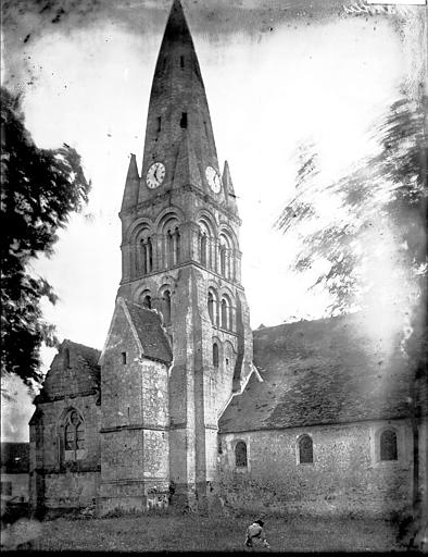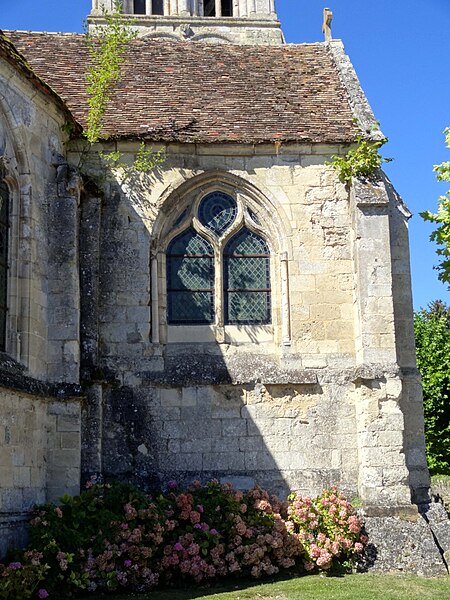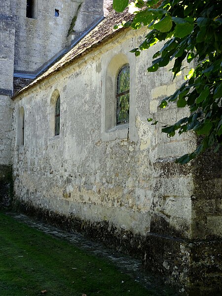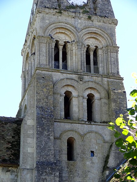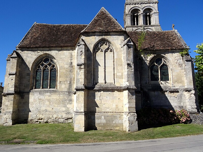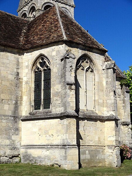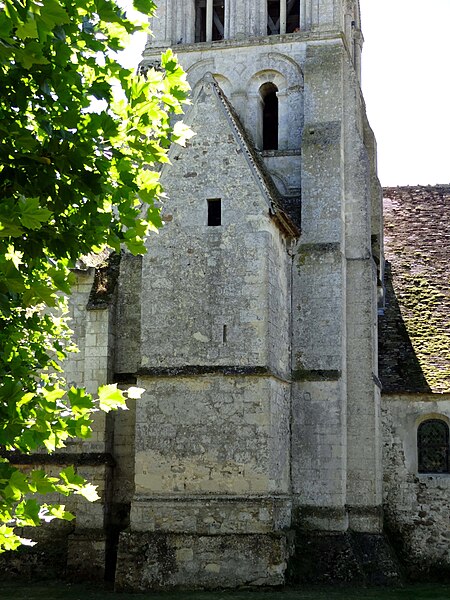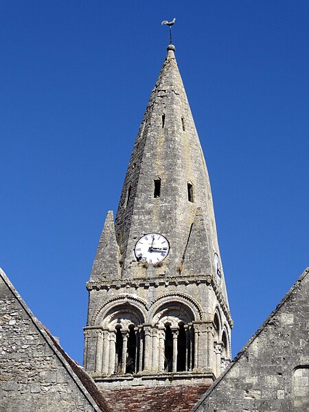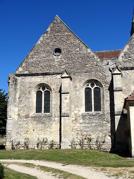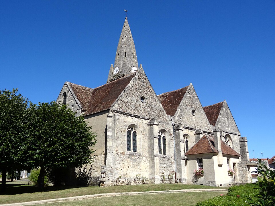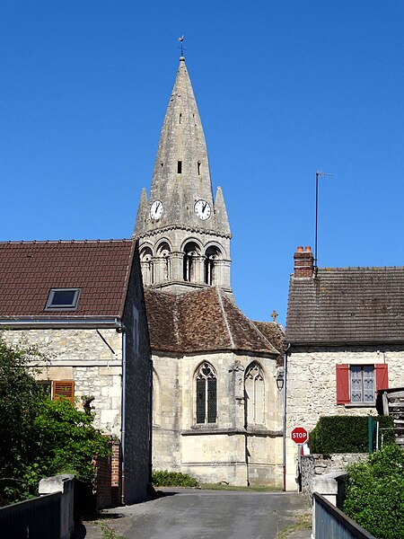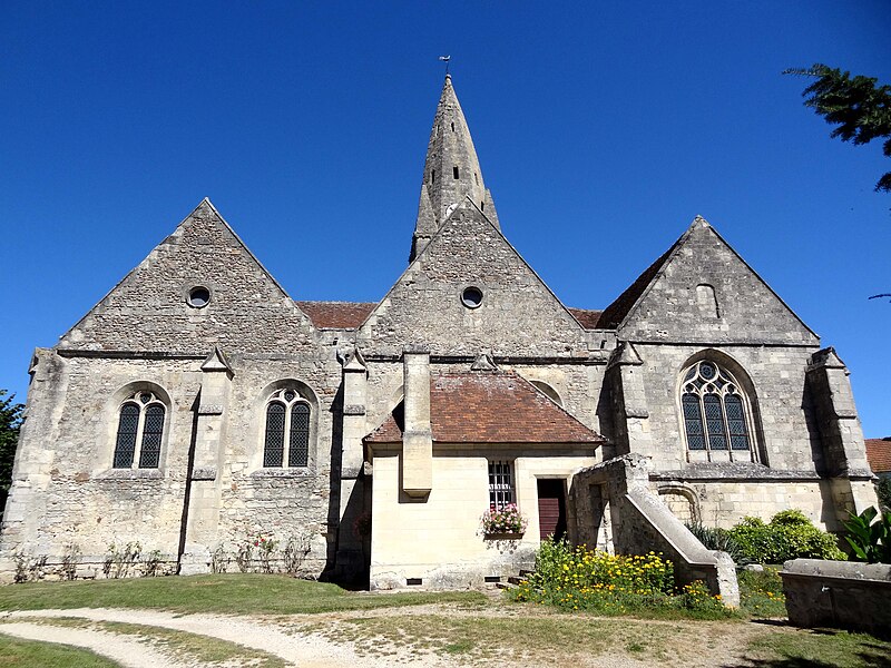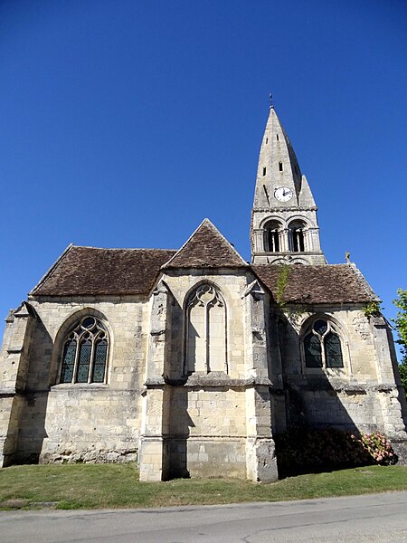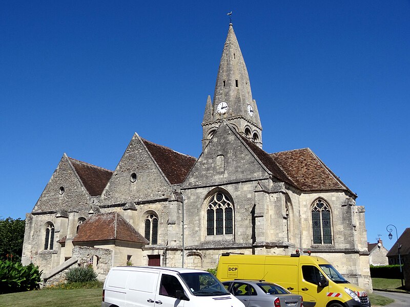 L’église Sainte‑Geneviève de Marolles (Oise) est une paroisse catholique bâtie au début du XIIe siècle et classée monument historique par arrêté du 15 janvier 1920. Elle a été édifiée dans les années 1130 par un atelier venu de Normandie et présente un roman tardif qui introduit déjà l’arc en tiers‑point et la voûte d’ogives, principalement visible à la croisée du transept. L’intérieur réserve une grande sobriété pour la nef, tandis que l’extérieur fut richement décoré : archivolte du portail occidental, corniches et ornements des fenêtres, aujourd’hui surtout lisibles depuis les bas‑côtés. Le principal vestige des années 1130 est l’imposant clocher roman à trois étages de baies surmonté d’une haute flèche octogonale en pierre, considéré comme l’un des plus beaux du département. Les élévations extérieures sont pour l’essentiel gothiques, notamment flamboyantes, en raison d’importantes campagnes de remaniement : reconstruction du croisillon nord au cours des années 1240, puis, au XVIe siècle, remplacement du chœur, du croisillon sud et du bas‑côté sud dont le voûtement resta inachevé. La voûte romane du carré du transept fut reprise en sous‑œuvre sur trois côtés, et les parties orientales conservent néanmoins une lecture cohérente. Sous l’Ancien Régime la cure relevait du doyenné de Coyolles, de l’archidiaconé de la Rivière et du diocèse de Soissons ; le collateur était le chapitre de Soissons par donation de l’évêque Josselin de Vierzy, et la dîme était partagée entre le curé, le séminaire diocésain, l’hôtel‑Dieu de Soissons et le commandeur de Moisy‑le‑Temple. À la Révolution, les découpages diocésains furent remaniés mais l’église dépend aujourd’hui de la paroisse Saint‑Félix de Valois à La Ferté‑Milon, où des messes dominicales anticipées sont célébrées irrégulièrement deux ou trois fois par an. Les travaux primordiaux des années 1130‑1140 concernent le portail occidental, la nef, le bas‑côté nord, la base du clocher et la croisée du transept ; l’étage de beffroi du clocher et sa flèche sont postérieurs et les piliers des grandes arcades du sud ont été retaillés. La campagne flamboyante du XVIe siècle a aussi intégré quelques éléments de vocabulaire Renaissance, en particulier dans l’élévation et le remplage des baies du bas‑côté sud. Après la Seconde Guerre mondiale l’édifice fut laissé dans un mauvais état — sacristie détruite et nombreuses fenêtres obstruées — puis restauré pour retrouver un état satisfaisant. Le plan est orienté et comprend une nef de quatre travées accompagnée de bas‑côtés inégaux, un transept aux deux croisillons reconstruits à des époques différentes et un chœur formé d’une courte travée droite et d’une abside à trois pans ; la base du clocher occupe la dernière travée du bas‑côté nord et la sacristie actuelle jouxte la troisième travée du bas‑côté sud. La nef n’a jamais été voûtée et montre un plafond plat en bois relié aux murs gouttereaux par des lambris en quart‑de‑cercle ; seules les quatre travées orientales sont couvertes d’ogives et la base du clocher est voûtée en berceau brisé perpendiculairement à l’axe de l’édifice. L’accès se fait par le portail occidental ou par le portail latéral de la quatrième travée du bas‑côté sud, le portail du croisillon sud étant condamné. La nef illustre la coexistence de traits archaïques et novateurs du XIIe siècle : grandes arcades en tiers‑point sans colonnettes à chapiteaux, piliers allongés munis d’impostes sculptées, arcades à simple rouleau et polychromie architecturale en tons d’ocre encore perceptible, surmontée au XVIe siècle de peintures d’apôtres. Les élévations nord et sud diffèrent par leurs proportions et leurs profils d’impostes, les fenêtres hautes ayant par ailleurs été partiellement occultées lors de la rehausse des toitures des bas‑côtés. La façade occidentale conserve surtout une triple archivolte romane, partiellement mutilée par le percement ultérieur d’un grand oculus aujourd’hui bouché ; les voussures présentent des décors d’influence normande, bâtons brisés et motifs en X, ainsi qu’un registre de têtes stylisées. Le clocher, situé à l’angle entre la nef et le croisillon nord, comporte trois étages de baies et une flèche octogonale ; l’étage de beffroi est particulièrement soigné, avec colonnettes, chapiteaux feuillagés, cordon de têtes de clous et modillons sculptés, tandis que les deux étages inférieurs sont plus sobres. La croisée du transept et le clocher forment la partie la plus remarquable de l’intérieur : la voûte d’ogives des années 1130, attribuée à un atelier normand, présente des profils et des chapiteaux en faible relief évoquant des godrons et des palmettes, et montre des caractéristiques anciennes comme des voûtains bombés et des ogives à boudin. Le croisillon nord, repris au XIIIe siècle, ouvre par un doubleau à double rouleau gothique qui s’intègre habilement à la voûte romane, tandis que le croisillon sud et le chœur, reconstruits tardivement, relèvent du gothique flamboyant avec liernes, tiercerons et culs‑de‑lampe sculptés. Le bas‑côté sud, rustique et daté du second quart du XVIe siècle, offre des baies en plein cintre au remplage d’inspiration Renaissance, des départs de voûtes inachevés et une diversité de culs‑de‑lampe sculptés ; il met en regard la corniche romane du mur gouttereau sud de la nef. Le mobilier comporte quatorze éléments classés ou inscrits parmi lesquels un grand Christ en croix en bois, des fonts baptismaux du XVe siècle avec couvercle de chêne, un confessionnal du XVIIIe siècle et plusieurs meubles de sacristie des XVIIe‑XVIIIe siècles, inscrits depuis juin 2003. Des panneaux peints recto/ver