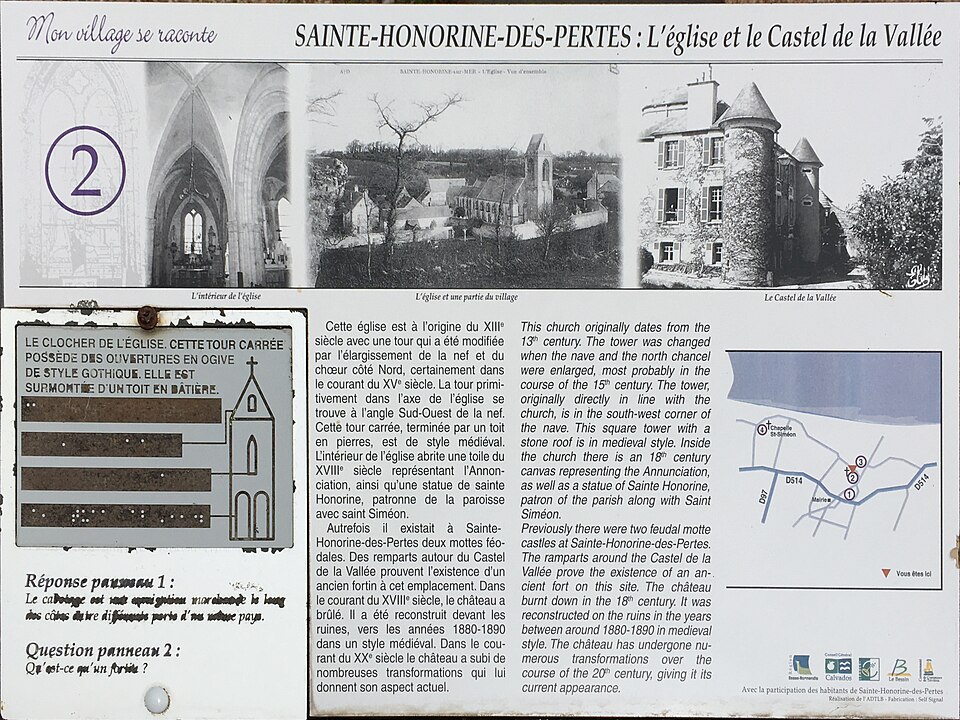 L'église Sainte‑Honorine est une église catholique située dans le bourg de Sainte‑Honorine‑des‑Pertes, dans le département du Calvados, à 750 m du littoral de la Manche. Le clocher est classé, et le reste de l'édifice est inscrit au titre des monuments historiques depuis le 21 mai 1927. Des notices et illustrations relatives à l'édifice sont consultables sur Wikimedia Commons. Parmi les références figurent l'ouvrage d'Arcisse de Caumont, Statistique monumentale du Calvados (t. 3, Caen, Hardel, 1857, p. 652‑653), ainsi que les portails consacrés aux monuments historiques, au Calvados, à l'architecture chrétienne et au catholicisme.