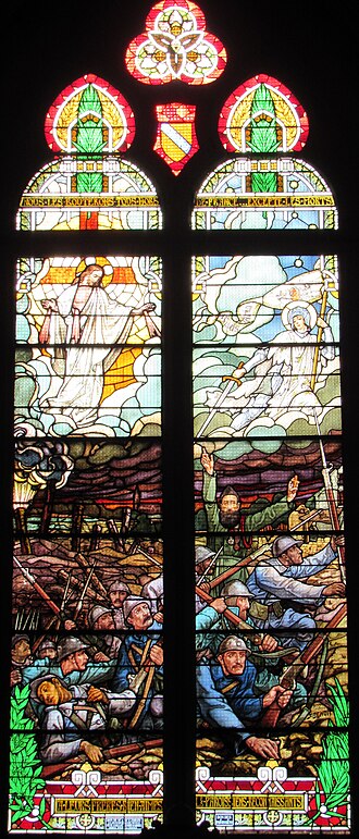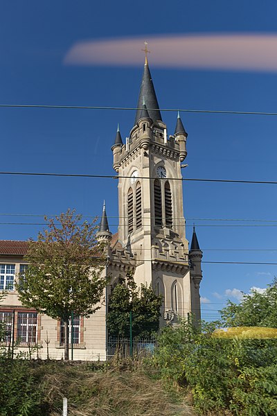 L'église Sainte-Jeanne-d'Arc est un édifice religieux situé à Lunéville (Meurthe-et-Moselle). Elle a été élevée sur les plans de l'architecte Jules Criqui par l'entrepreneur de maçonnerie Henri Masson pour la paroisse érigée en juillet 1910 sous ce vocable. Les dates portées au chevet indiquent : 10 juillet 1910 (création de la paroisse), 17 avril 1911 (pose de la première pierre) et 17 octobre 1911 (consécration) ; la construction s'est déroulée principalement en 1911 et 1912. Le ciment armé a été employé pour la charpente et les voûtements, avec un vaisseau couvert par une voûte en berceau brisé à lunettes. Le vaisseau est éclairé par 28 vitraux réalisés par les ateliers Janin et Benoît de Nancy ; leurs cartons ont été dessinés avant la Première Guerre mondiale et les verrières ont été exécutées de 1912 à 1947. Vingt-quatre de ces vitraux retracent les épisodes de la vie de Jeanne d'Arc, de sa naissance à sa béatification, dont six scènes en Lorraine ; les personnages y sont représentés en taille humaine. L'ensemble couvre 400 m2 et constitue le plus important cycle de vitraux johanniques connu. À l'extérieur, l'architecture évoque les châteaux-forts de la fin du Moyen Âge et intègre des éléments décoratifs inspirés des dispositifs défensifs médiévaux, comme échauguettes, créneaux, merlons, meurtrières et mâchicoulis. Les motifs floraux qui entourent les vitraux relèvent de l'Art nouveau et sont caractéristiques de l'École de Nancy. L'abbé Gérardin, curé de la paroisse, a joué un rôle déterminant dans l'achèvement et la dédicace de l'église ; il obtint une autorisation spéciale du pape Pie X pour la consacrer à la « Bienheureuse » Jeanne d'Arc. À l'époque de sa construction, cette église fut la troisième placée sous le patronage de Jeanne d'Arc, la sainte n'étant alors que récemment béatifiée. L'église Sainte-Jeanne-d'Arc de Lunéville est inscrite dans sa totalité au titre des monuments historiques par arrêté du 5 février 2001. Le porche, le chevet ainsi que la devise et le blason figurent parmi les éléments remarquables de l'édifice.