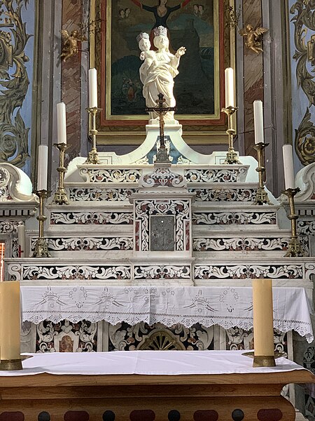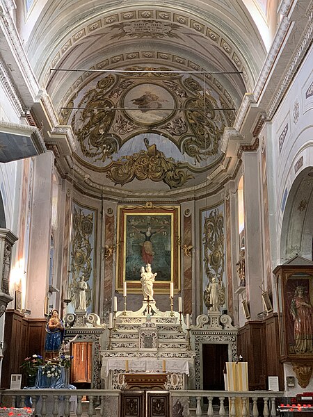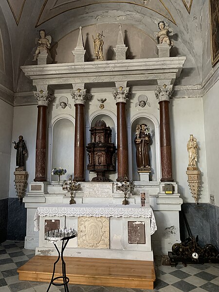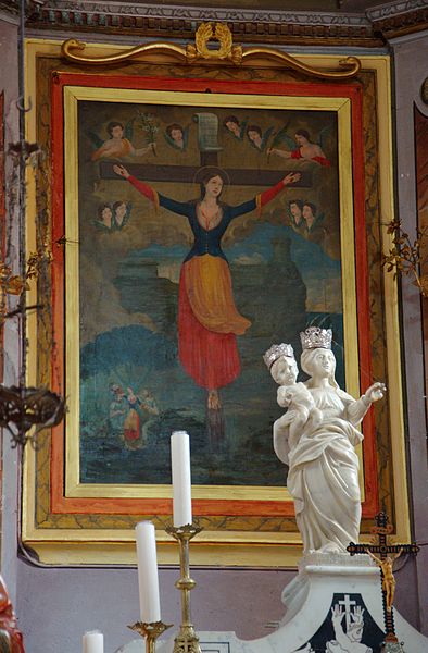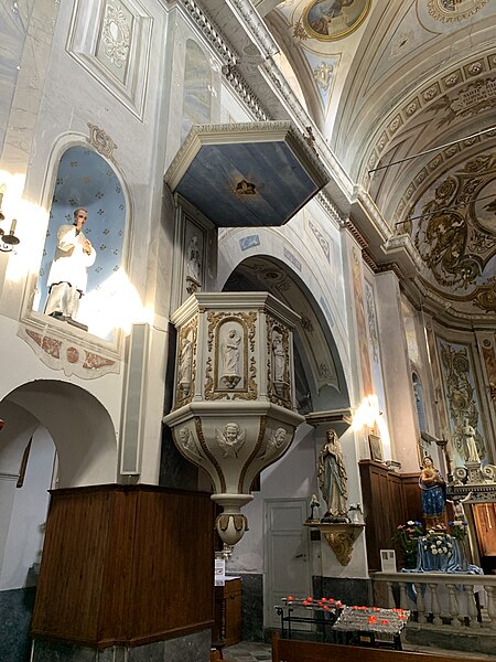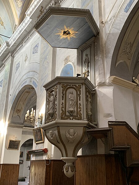 Édifiée au XVIIe siècle et remaniée au XVIIIe, l'église était en mauvais état au début du XIXe siècle. Sa façade principale est surmontée d'un fronton triangulaire et l'édifice se termine par un chevet plat. L'intérieur comprend une nef centrale couverte d'une voûte et terminée par un chœur profond, flanquée de deux collatéraux qui s'ouvrent sur la nef par des arcs retombant sur des pilastres.