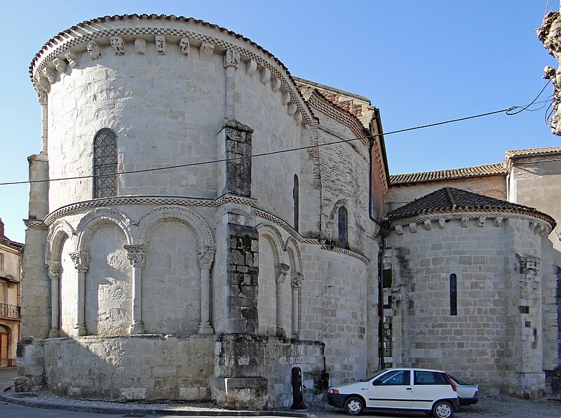L'origine du monastère est inconnue, mais des sarcophages mérovingiens découverts autour de l'église témoignent d'une nécropole sur le site et les fondations ont été attribuées au milieu du IXe siècle par G. Alaux. L'église prieurale, mentionnée parmi les dépendances de l'abbaye de La Chaise-Dieu en 1117, fut donnée aux bénédictins de cette abbaye et érigée en prieuré. Plusieurs actes juridiques et confirmations pontificales ont assuré ses droits, parmi lesquels la confirmation papale et la lettre patente du duc d'Aquitaine au début du XIIe siècle, ainsi qu'une bulle pontificale de 1184. Le prieuré a joui d'une exemption de la juridiction épiscopale et le chapitre se reconnaissait seul supérieur du pape. Au XIIIe siècle, diverses transactions et jugements attestent des droits seigneuriaux et judiciaires liés au prieuré. Le prieuré comptait autrefois une douzaine de religieux mais entra en décadence au XVe siècle par mauvaise gestion ; il est ensuite signalé avec seulement dix moines en 1763. Les guerres de Religion l'ont fortement endommagé et, selon les sources, les bâtiments conventuels médiévaux furent en grande partie détruits par les protestants. La discipline monastique y fut rétablie par des religieux de Saint-Maur, qui restaurèrent l'église et le couvent, et la réforme mauriste est également mentionnée en 1652. Le clocher fut restauré au début du XVIIe siècle et les bâtiments conventuels furent reconstruits au milieu du XVIIIe siècle. Après la Révolution, le prieuré fut morcelé et vendu; ses ailes furent reconstruites, l'aile est servit d'école de garçons puis d'école de filles avant d'être déplacée à l'hospice à la fin du XIXe siècle. En 1858 l'église, menaçant ruine, fut interdite; des projets de restauration proposés par des architectes furent refusés, puis des travaux reprirent en 1864 sous la direction de Gustave Alaux et avec l'intervention d'entrepreneurs agenais pour refaire la nef sud; la voûte fut achevée sur des plans de Léopold Payen. L'église, reconstruite en grande partie au XIXe siècle dans un style néo-gothique notamment pour la nef, le clocher occidental et la façade, a été classée au titre des monuments historiques en 1908. Sur le plan architectural, de l'édifice roman subsistent l'abside principale et l'absidiole nord du XIIe siècle, qui indiquent un projet initial important à une nef et deux bas-côtés. La nef fut complétée au XIVe siècle par l'édification d'un vaisseau et, au XIVe siècle encore, le bas-côté nord fut remplacé par un vaisseau de deux travées voûté d'ogives, aujourd'hui chapelle de la Vierge. L'église devait comporter à l'origine trois nefs, mais une seule subsiste, reconstruite sur le plan de la nef médiane ; une chapelle au sud complétait probablement l'ensemble. L'abside principale se prolonge par une abside plus étroite et non concentrique, et l'abside du sanctuaire, voûtée en cul-de-four et très basse, a nécessité une construction particulière : le grand hémicycle n'a pas de voûte hémisphérique parfaite et sa voûte appuie sur des assises établies au-dessus de l'arc triomphal. L'ornementation sculptée présente des motifs végétaux, des têtes saillantes, des animaux réels ou hybrides et des scènes de personnages. La porte occidentale relève d'un style du XIVe siècle et le clocher, élevé sur une base carrée en arrière du pignon, s'amortit en octave. Des murs en petit appareil et des mosaïques ont été signalés en 1859 à l'emplacement du prieuré et de la halle. Les études et notices locales, dont celle de Philippe Tamizey de Larroque, livrent la plupart des informations connues sur l'histoire et l'architecture du prieuré et de l'église Sainte-Livrade.