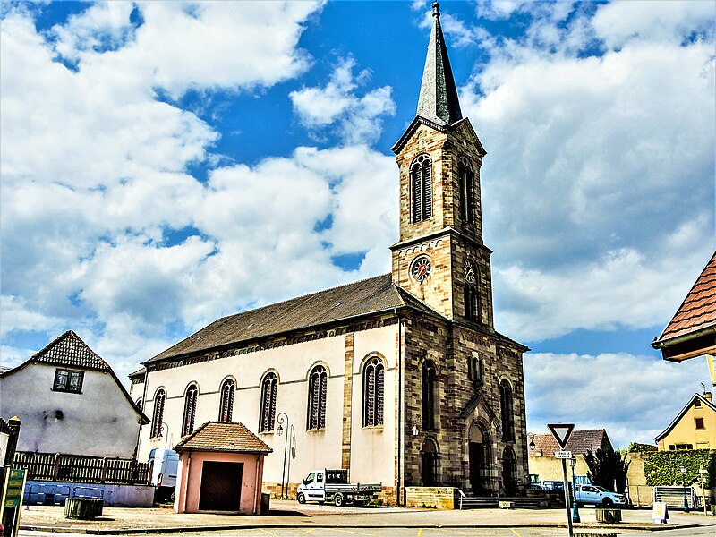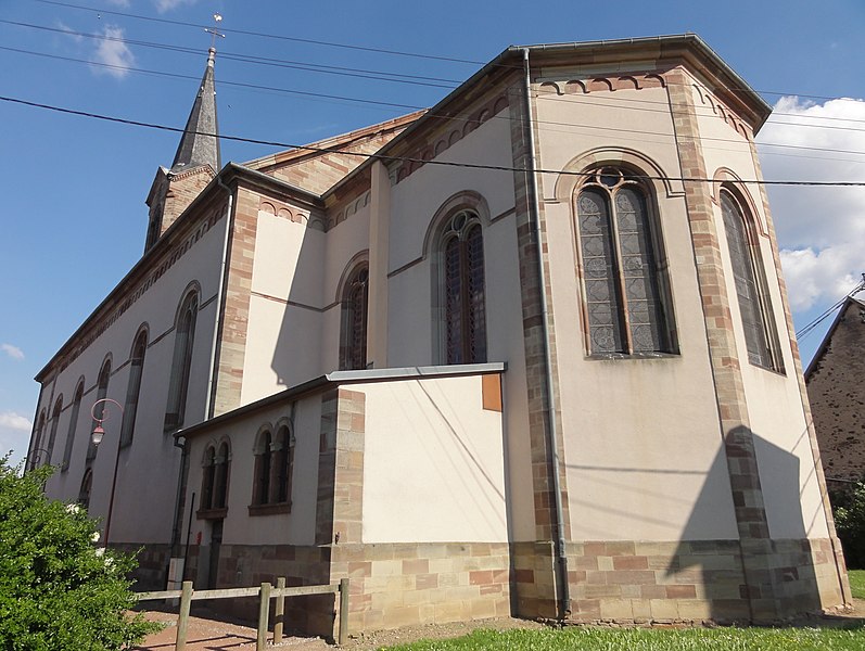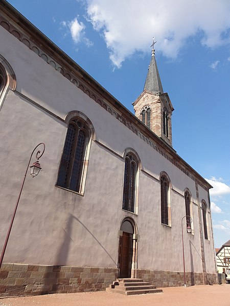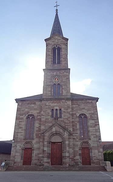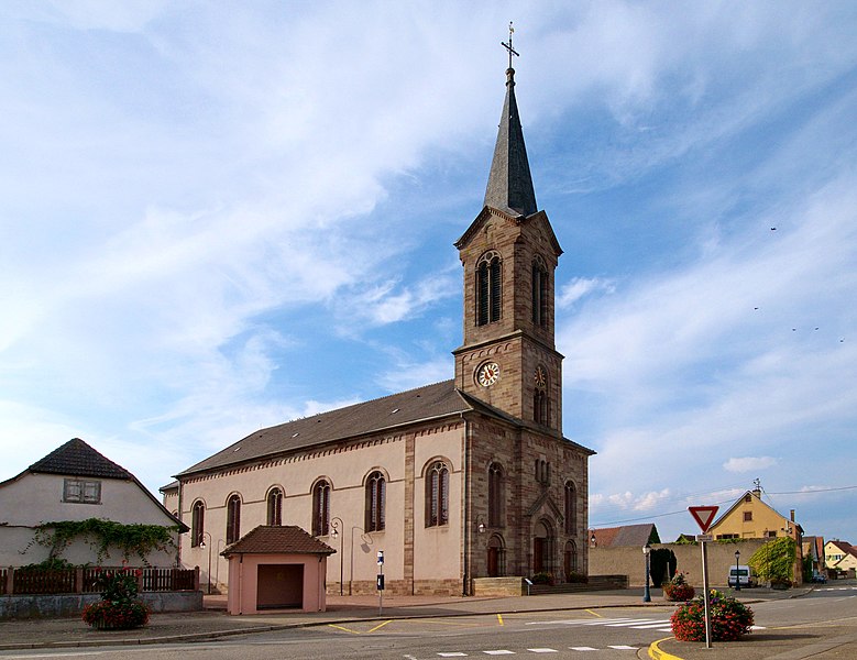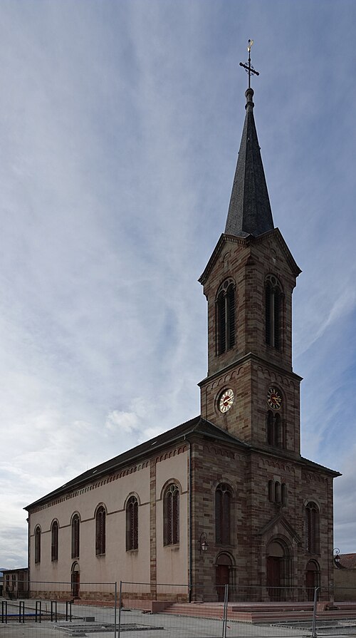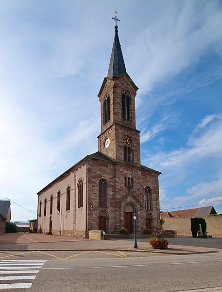 L'église catholique Sainte‑Lucie est un monument historique situé rue d'Oberhergheim à Niederhergheim, dans le département du Haut‑Rhin. Elle est mentionnée pour la première fois en 1262. L'édifice a fait l'objet d'une reconstruction en 1750, puis l'ancien bâtiment a été rasé vers 1870 pour permettre l'élévation de l'église actuelle sur un autre emplacement. La nouvelle église a été réalisée vers 1870 d'après les plans de l'architecte G. Laubser et par l'entrepreneur Charles Albrecht d'Altkirch, selon les sources. L'intérieur présente un décor néo‑roman exécuté en 1896 par l'atelier du peintre Carl‑Philipp Schilling (attribué également à Philippe Carl Schilling selon les sources). Les murs sud, est et nord de la nef sont ornés de motifs géométriques et floraux stylisés — rosaces, entrelacs et rosettes — et les caissons du plafond portent des symboles religieux et des rosaces. L'édifice est inscrit au titre des monuments historiques depuis 2000.