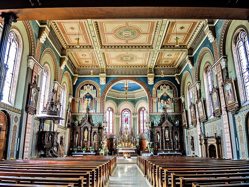 Le décor néo-roman de l'intérieur est exécuté par l'atelier du peintre Carl-Philipp Schilling.