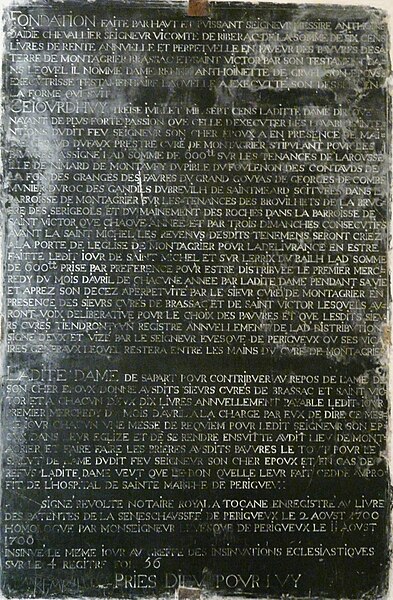 L'église Sainte-Madeleine, située dans le quart nord-ouest du département de la Dordogne, en Ribéracois, se trouve au sud-est du bourg de Montagrier, près de la route départementale 103 ; elle est accompagnée d'un cimetière. Construite selon un plan roman à nef unique terminée par une abside demi‑circulaire, l'édifice présente une travée antérieure à l'abside montée en coupole qui supporte le clocher ; cette travée est contrebutée de chaque côté par deux absides formant le transept. Le plan se distingue par la présence d'absidioles secondaires greffées sur les trois absides principales, et la décoration romane, d'un caractère primitif, est attribuée au XIe siècle par certains auteurs. L'église de Montagrier fut un ancien prieuré bénédictin relevant de l'abbaye de Brantôme ; tous les bâtiments conventuels qui s'étendaient au nord ont disparu et l'édifice avait été construit hors de l'enceinte fortifiée. Mentionnée dès le XIe siècle, elle devint église paroissiale au XVIIIe siècle lors de la destruction de l'église Saint‑Côme‑Saint‑Damien du bourg, ce qui explique sa situation relativement excentrée. La nef originelle, jugée trop petite et en mauvais état, fut démolie puis reconstruite en 1897, et le clocher fut rehaussé à la même époque ; des restaurations récentes ont entraîné la disparition de la sacristie et des lauzes horizontales qui surmontaient les corniches de l'abside et des absidioles. Selon les auteurs, la partie romane est située soit au XIe siècle, selon Camille Enlart qui classe l'édifice parmi les églises à plan tréflé, soit au début du XIIe siècle, selon le marquis de Fayolle, malgré le caractère archaïque de certains chapiteaux et sculptures. Il ne subsiste de l'église romane que la partie comprenant la croisée du transept, formée de quatre piliers de 1,50 m de côté, cantonnés intérieurement de colonnes à chapiteaux cubiques qui reçoivent la retombée des arcs à double rouleau et des pendentifs surmontés d'une coupole. Les croisillons du transept et le chœur, en absides demi‑circulaires, dégagent les faces intérieures des piliers du carré du transept et s'ouvrent vers l'est pour communiquer avec les absidioles par des baies en plein cintre. L'abside principale s'ouvre sur 3,80 m sous l'arc triomphal et présente une profondeur de 5,80 m ; elle est décorée de cinq arcs d'appareil portés par quatre demi‑colonnes et deux pilastres adossés aux piliers du transept, et elle est éclairée par trois fenêtres en plein cintre situées au centre des arcades orientales. Une plaque de pierre de 0,40 × 0,40 m et 0,15 m d'épaisseur portant, en faible relief, un chrisme a été retrouvée lors de travaux et encastrée au‑dessus de l'arc du carré du transept, face à la nef ; Edmond Le Blant l'a attribuée au milieu du VIe siècle. Le marquis de Fayolle a émis l'hypothèse que certains chapiteaux de facture archaïque pourraient être des réemplois provenant d'édifices plus anciens, en notant des rapprochements matériels avec des pièces conservées au musée de Périgueux. Classée au titre des monuments historiques le 10 avril 1912, l'église conserve également un chrisme classé depuis 1908, ainsi qu'une chaire de style Renaissance et une plaque commémorative en marbre noir relative à une fondation du vicomte de Ribérac en 1700 pour les pauvres de Montagrier, Brassac et Saint‑Victor, ces deux dernières pièces ayant été classées en 1975.