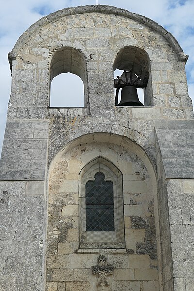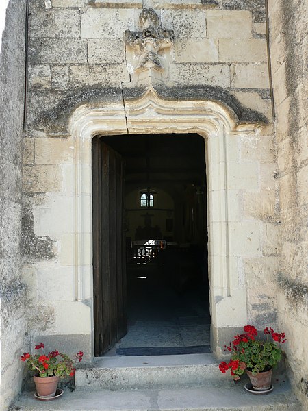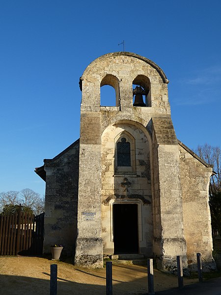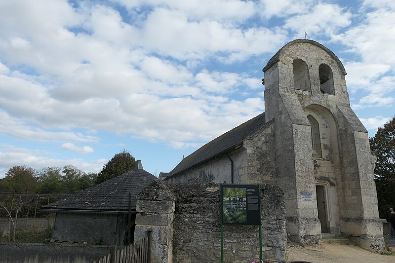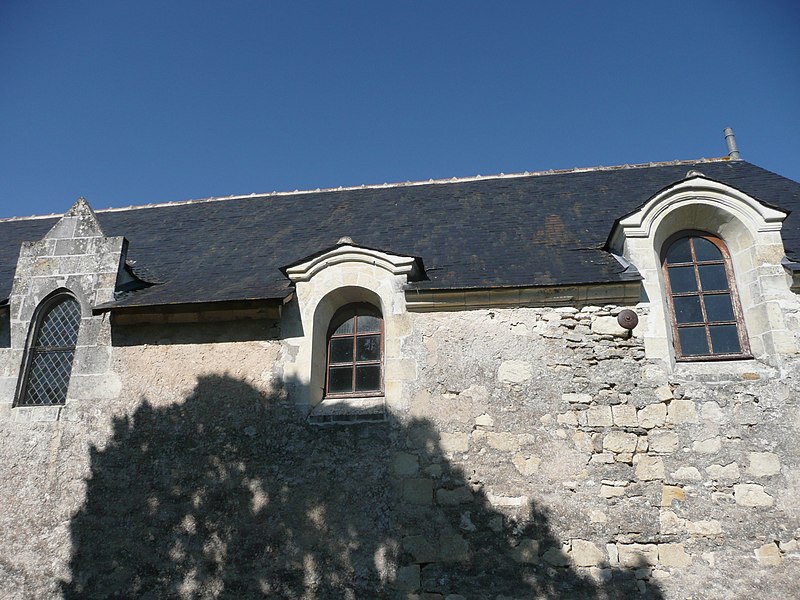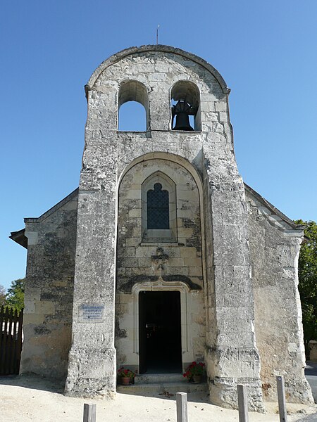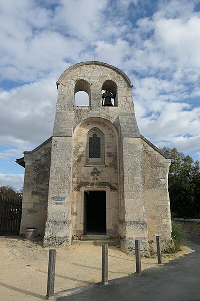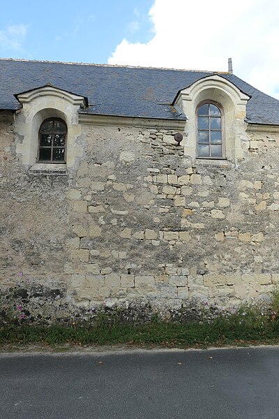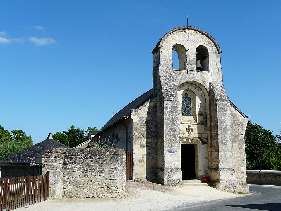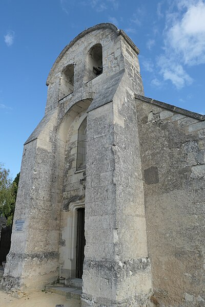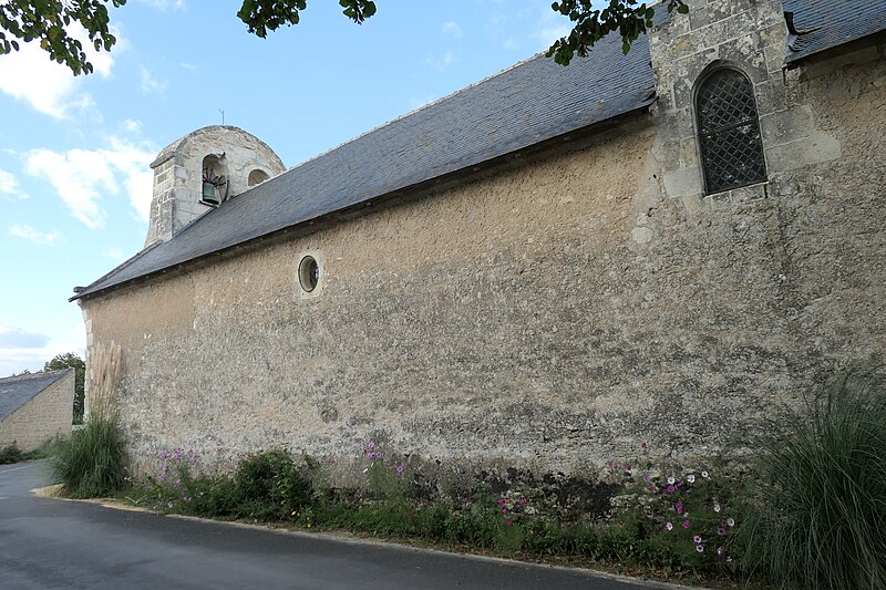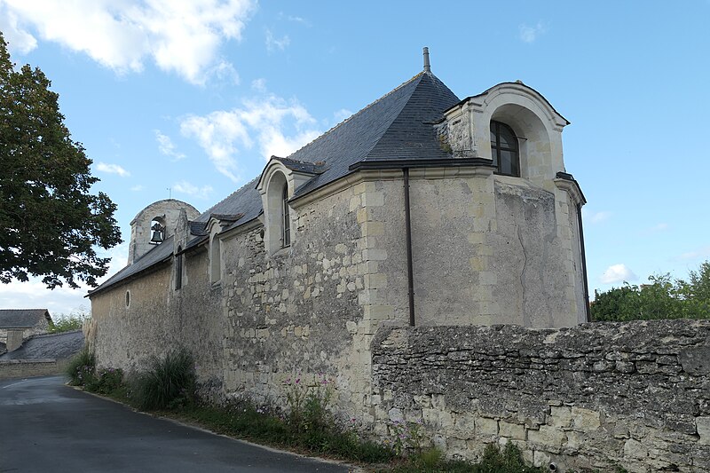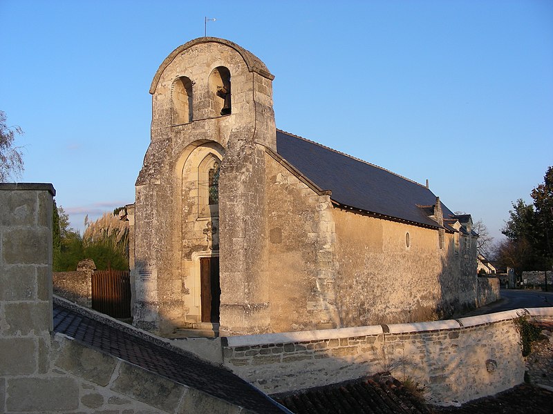L'édifice, de petites dimensions (30 m sur 8 m), a connu de multiples remaniements. Les murs sont en moellons de grison (falun dur de Doué-la-Fontaine) et en tuffeau, la couverture est en ardoise avec un toit à longs pans et croupe. La façade occidentale, d'inspiration romane et soutenue par deux puissants contreforts, comporte un portail en tuffeau orné de moulures, d'une accolade fleuronnée et d'une voussure de style Renaissance ; une fenêtre ogivale y a été percée au XVIe siècle lors de restaurations. Le clocher-mur, peu fréquent en Anjou, a pris une forme arrondie vers 1870 au-dessus d'un ancien pignon ; il présente une bretèche double et n'abrite aujourd'hui qu'une cloche ancienne datée de 1540 portant l'inscription « LAN 1540 JE FUS FONDUE ET BAPTISÉE LOUANGE A DIEU », probablement rescapée de l'église de Varennes. Le portail en tuffeau porte des graffitis de pèlerins, souvent religieux ou symboliques, gravés dans la pierre tendre.