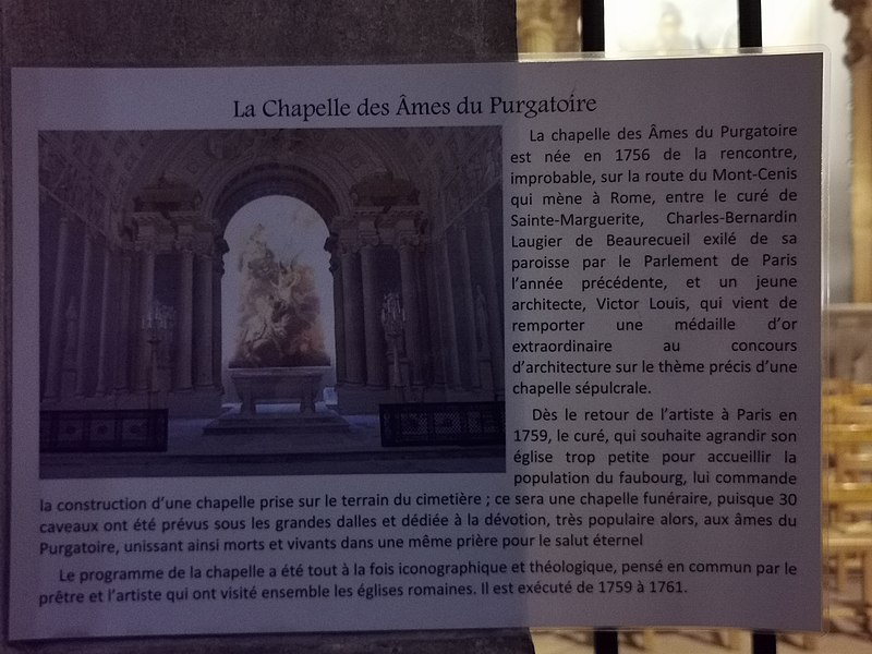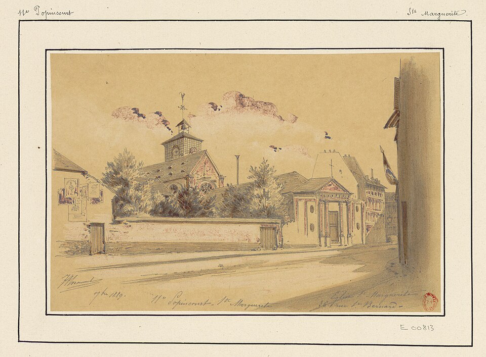 L'église Sainte-Marguerite est une paroisse catholique romaine du XVIIe siècle située 36, rue Saint-Bernard dans le 11e arrondissement de Paris. Elle se trouve dans le sud du quartier, à mi-chemin entre les places de la Bastille et de la Nation, à une centaine de mètres au nord de la rue du Faubourg-Saint-Antoine et à une dizaine de mètres au sud de la rue de Charonne ; son chevet donne sur la rue Charrière et elle est bordée au sud par le square Raoul-Nordling. En 1624 Jean de Vitry fit donation d'un terrain à Antoine Fayet, curé de Saint-Paul, pour y ériger une chapelle dédiée à sainte Marguerite, qui devint succursale en 1634 puis église paroissiale en 1712. Le cimetière attenant est ouvert en 1637 ; la nef et les bas-côtés sont allongés en 1679, la chapelle du transept nord (Saint-Joseph-Sainte-Marguerite) est édifiée en 1703 et le transept sud est agrandi en 1724 par la chapelle de la Vierge. Entre 1760 et 1764 l'architecte Victor Louis réalise la chapelle des Âmes-du-Purgatoire de style néoclassique, décorée en trompe-l'œil par Paolo Antonio Brunetti avec des frises et statues de Gabriel Briard ; cette chapelle constitue un exemple exceptionnel de trompe-l'œil conservé à Paris. En 1790 Sainte-Marguerite est le siège d'une des 52 paroisses urbaines du diocèse de Paris ; la chapelle de l'ancien couvent des Annonciades de Popincourt devient en 1791 succursale, puis église de la nouvelle paroisse Saint-Ambroise. Le curé Charles-Bernardin de Laugier de Beaurecueil, en poste depuis 1743, refuse le serment constitutionnel et est destitué en janvier 1791. Pendant la Révolution, les corps d'environ 300 personnes guillotinées sur les places de la Bastille et de la Nation sont enterrés dans le cimetière de l'église, et le 10 juin 1795 Louis-Charles Capet (appelé Louis XVII par les royalistes) est inhumé dans ce cimetière, probablement en fosse commune, une inhumation rappelée par une plaque apposée sur le mur de l'église. Des exhumations effectuées en 1846, 1894 et 1979 ont mis au jour des ossements appartenant à plusieurs personnes ; en 1894 des spécialistes constatent que le crâne examiné appartient à un sujet masculin de plus de 16 ans et d'autres restes, notamment un crâne scié d'un jeune de 15 à 18 ans, ne correspondent pas à l'enfant mort au Temple décrit comme âgé d'environ dix ans. La plupart des historiens estiment que la dépouille du jeune prince, mêlée à d'autres corps dans un cimetière souvent bouleversé, est sans doute perdue à jamais ; les ossements exhumés au XIXe siècle reposent dans un caveau aménagé contre le mur extérieur de la chapelle des Âmes-du-Purgatoire, surmonté d'une stèle commémorative du XIXe siècle régulièrement fleurie. Le cimetière est ensuite fermé en 1804 ; le pape Pie VII visite l'église et y célèbre la messe en 1805, et le presbytère est détruit en 1912 pour être remplacé par une école. Les frontons sculptés de l'église sont inscrits aux monuments historiques en 1928, le chœur et la chapelle des Âmes-du-Purgatoire sont classés en 1960, les vestiges du cimetière sont inscrits en 1962, puis un arrêté de classement du 11 septembre 2017 modifie ces protections. On peut voir dans l'église la pierre tombale de Georges Jacob fils (1768–30 vendémiaire an XII [23 octobre 1803]), portant l'estampille Jacob Frères. Le plan de l'édifice est en croix latine, dans le style classique du XVIIe siècle. Le clocher est un beffroi en bois de section carrée, recouvert d'ardoises, comportant une horloge sur chacun de ses quatre côtés ; il abrite quatre cloches baptisées le 7 mars 1804 sous les noms de Napoléon Jean Baptiste, Jeanne Marguerite, Anne Marie et Gabrielle Sophie. La façade sur la rue Saint-Bernard présente quatre pilastres doriques soutenant un fronton triangulaire nu surmonté d'une croix métallique ; les frontons latéraux du transept portent deux bas-reliefs sculptés par l'abbé Goy, Les Pèlerins d'Emmaüs au nord et une Vierge à l'Enfant au sud. À l'intérieur, la nef et le chœur accueillent un riche mobilier et de nombreuses œuvres : des vitraux de Carot (1882) représentent sainte Marguerite sortant du dragon et l'Annonciation, et des verrières commémoratives rappellent les seize carmélites de Compiègne, la visite du pape Pie VII et la mort de Mgr Affre en 1848. Le mobilier comprend des statues (saint Fiacre, saint Joseph, saint Vincent de Paul — copie d'un original de Jean-Baptiste Stouf), un buste en marbre de la Vierge à l'Enfant, le groupe du Martyre de sainte Marguerite (1838) par Hippolyte Maindron, le monument funéraire de l'abbé Antoine Fayet et le haut-relief en marbre Le Christ descendu de la Croix (1705) d'Eustache Nourrisson et Robert Le Lorrain, provenant du tombeau de Catherine Duchemin, lui-même classé monument historique. La collection picturale réunit des œuvres des XVIe au XIXe siècles, parmi lesquelles Le Christ descendu de la Croix attribué à Charles Dorigny, Le Massacre des Innocents de Francesco Rosa, Saint François de Sales installant saint Vincent de Paul par Jean Restout, Saint Ambroise par Louis Jean François Lagrenée et Sainte Marguerite chassée par son père (1817) de Pierre-Auguste Vafflard. La chapelle des Âmes-du-Purgatoire présente une peinture murale en trompe-l'œil figurant un temple, exécutée par Paolo-Antonio Brunetti pour les architectures et ornements et par Gabriel Briard pour les frises, statues et le tableau du maître-autel Le Passage des âmes du purgatoire au ciel. L'église possède un orgue de tribune et un orgue de chœur, et la liste des curés de la paroisse est gravée sur deux plaques de marbre fixées sur des piliers, avec notamment les mentions de Jean-Baptiste Blancheville (1804) et de Mathieu Charles Abel Mottini (1897).