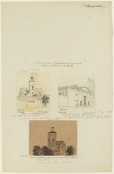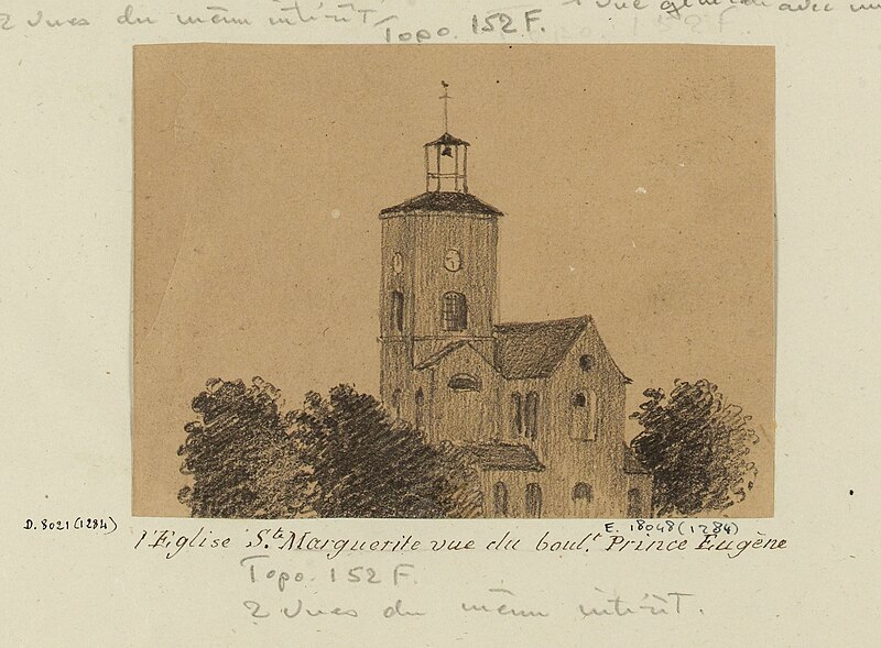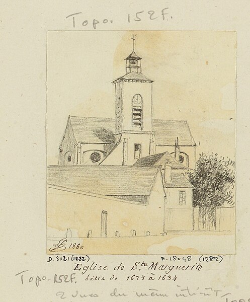 En totalité, l'église Sainte-Marguerite, avec, en totalité, le bâtiment de la sacristie attenant, les bâtiments de l'ancien charnier et l'ancien pavillon du bedeau ainsi que le sol correspondant à l'aire de l'ancien cimetière (à l'exception des bâtiments élevés sur cette aire), avec la stèle funéraire de George II Jacob, tels que délimités en rouge sur le plan annexé à l'arrêté, situés 36 à 40rue Saint-Bernard (cad. CH 01 15, 16) : classement par arrêté du 11 septembre 2017