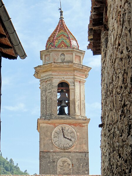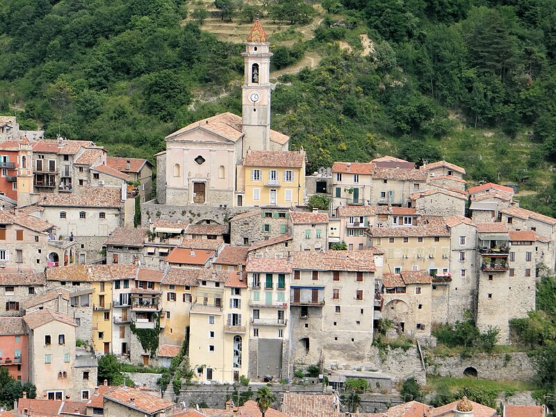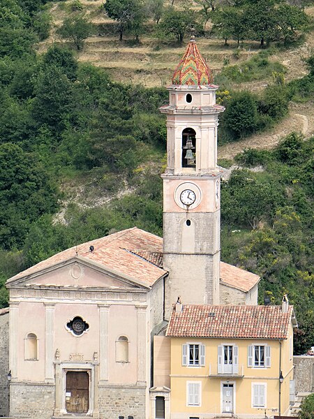 L'église conserve un ensemble de cinq retables ; un autre retable provenant de l'église ainsi que des éléments du retable de sainte Marguerite sont exposés au musée Chéret de Nice. Le retable de sainte Marguerite, attribué à Louis Bréa et peint vers 1498, se trouve derrière le maître-autel. À l'origine il comportait vingt panneaux et une prédelle, mais il fut disloqué en 1775 et sa partie centrale intégrée dans un cadre aux motifs baroques ; il ne compte plus aujourd'hui que dix compartiments. Les bandes latérales et la prédelle, déposées en 1763 lors de l'installation du décor baroque, sont conservées au musée Chéret de Nice. Le retable de saint Antoine de Padoue est attribué à Giovanni Canavesio et a été peint vers 1492. Un fragment du retable de saint Pierre et saint Paul, attribué à Louis Bréa et daté d'environ 1500, ne conserve que deux panneaux ; il a été restauré par le laboratoire du Louvre pour enlever une peinture qui le recouvrait. Le retable de saint Bernard de Menthon, peint vers 1490, provient probablement du même atelier. Le retable de saint Claude, classé au titre des monuments historiques, a été volé en 1991 ; il est attribué à François Bréa et daterait du début du XVIe siècle, l'inscription portant la date 1466 devant être lue 1566. Le retable de saint Jean-Baptiste, peint par Jacques Durandi vers 1450, est aujourd'hui exposé au musée Chéret de Nice. L'église conserve également d'autres tableaux et un reliquaire, et son trésor est présenté dans deux vitrines.