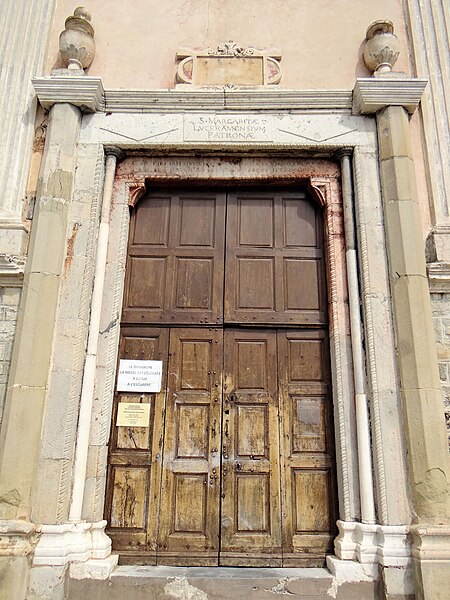 L'église Sainte-Marguerite, de style baroque, se situe à Lucéram (Alpes-Maritimes, Provence-Alpes-Côte d'Azur) et est classée au titre des monuments historiques depuis le 21 septembre 1983. Une plaque en marbre encastrée dans le mur nord porte la date de 1487, indiquant le début des travaux. La construction de l'église paroissiale débuta grâce à la générosité de Jacques Bonfils et sous la conduite du prêtre Jean Bonfils. L'édifice a été élevé à l'emplacement de l'ancien château et la porte encastrée dans le mur nord provient de ce château. La construction s'est étendue sur trente-six ans et l'église fut consacrée le 20 juillet 1525. La consécration a été célébrée par Barthélemy Portalenqui (ou de Luco), évêque titulaire de Troie et coadjuteur de l'évêque de Fréjus, religieux carme. Entre 1723 et 1779 l'intérieur a été « baroquisé » et enrichi d'un décor stuqué de style rococo. Le parvis actuel date de 1926.