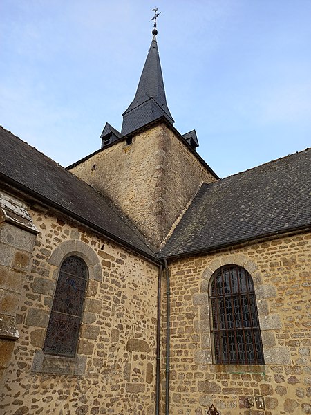 L'église Sainte-Marguerite, située à Sainte-Marguerite-de-Carrouges dans l'Orne, remonte primitivement au XIIe siècle. De cette époque romane, seule subsiste la façade occidentale avec son porche en granite. Le porche présente une double voussure reposant sur une colonnette d'angle et s'inscrit dans un arc à claveaux simples ; une niche au‑dessus abrite une statue de Saint‑Sébastien. L'édifice a un plan en croix latine : une nef unique, un transept saillant dont les deux bras sont prolongés vers le chœur par une chapelle, et un chevet plat. Une tour carrée s'élève à la croisée du transept et est surmontée d'un clocher percé de petites ouvertures. Les baies latérales datent du XVIIe siècle, période à laquelle le transept et la partie orientale de la nef ont été voûtés. L'église, ainsi que la porte du cimetière, sont inscrites aux monuments historiques depuis 1978.