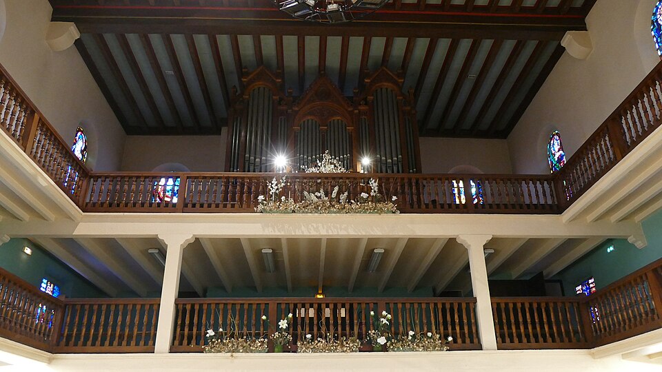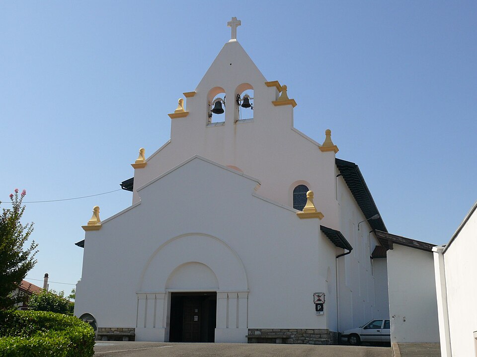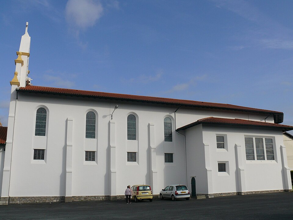 L'orgue Mutin-Cavaillé-Coll, à deux claviers et vingt-et-un jeux, a été acquis par l'abbé Paul Iriart lorsque l'ancien séminaire de Bayonne fut confisqué et offert à la paroisse Sainte-Marie en 1914; il a ensuite été agrandi et légèrement modifié en 1975, et son buffet est en chêne. L'église, construite en pierre, mesure 12 mètres de largeur; la nef a une longueur de 21,35 mètres et le chœur mesure 13 mètres, l'édifice reposant sur des pièces maîtresses en béton armé et contreforts. Elle est coiffée d'un pignon triangulaire de style labourdin qui sert de clocher et abrite deux cloches nommées Marie-Claire et Joseph.