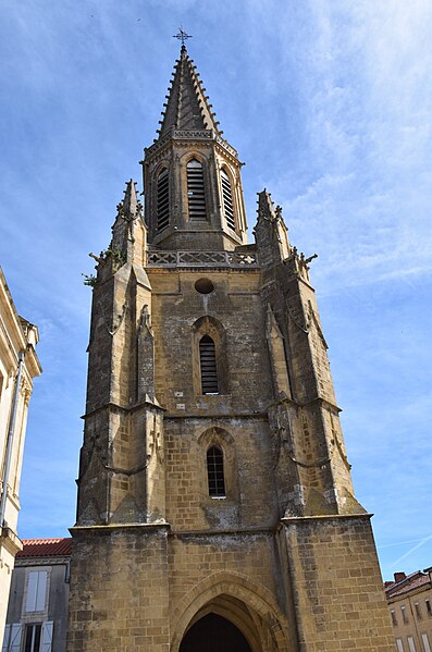 Fondée en 1283 par l'abbé Taillefer, supérieur de l'abbaye cistercienne de Nizors, la bastide de Boulogne suit le plan type des bastides, avec l'église au centre et une place publique entourée d'arcades. L'église, commencée vers cette époque et achevée plus tard, avait à l'origine un plan rectangulaire ; des chapelles latérales y furent ajoutées au XVe siècle. La base de la tour carrée forme un porche voûté soutenu par de gros piliers carrés. La flèche du clocher, foudroyée en 1883, a été reconstruite en 1890. La partie basse constitue l'un des rares témoignages de l'architecture des bastides du XIVe siècle.