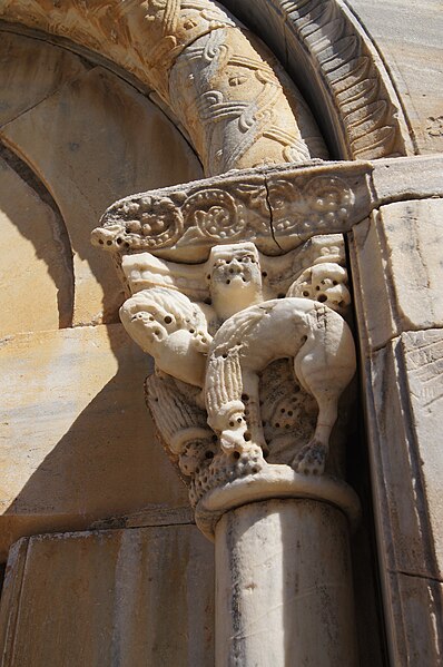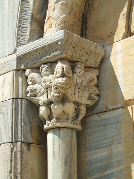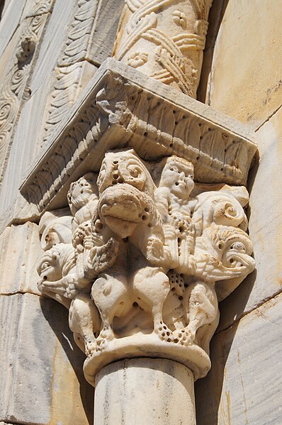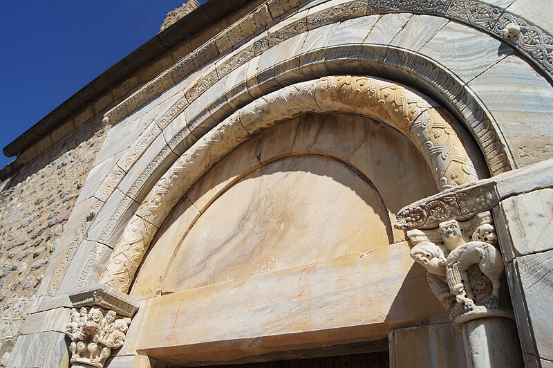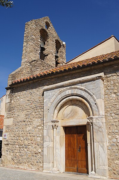 L'église Sainte-Marie de Brouilla est un édifice roman situé à Brouilla, dans les Pyrénées-Orientales, connu pour son chevet trilobé et son portail roman en marbre blanc de Céret. La première mention de l'édifice date de 959. L'église actuelle a été érigée au XIIe siècle et l'ensemble est classé au titre des monuments historiques par arrêté du 20 novembre 1972. La structure suggère au moins deux campagnes de construction : les murs, l'abside et les absidioles paraissent un peu antérieurs au XIIe siècle, tandis que le voûtement sur doubleaux a été réalisé ultérieurement. La mise en place du portail méridional, datable de la fin du XIIe siècle, constituerait une troisième phase. À l'intérieur, des contreforts munis d'impostes à retours sont plaqués contre les murs et exécutés dans un appareil différent ; l'arc triomphal, dépourvu de ressauts, ne leur fait pas pendant, et aucun bandeau intérieur ne relie les impostes le long des murs afin de ne pas obstruer les arcs des absidioles et les fenêtres latérales. L'édifice présente une nef unique de cinq travées, voûtée en berceau en plein cintre et soutenue par des arcs doubleaux. La nef se termine par une abside semi-circulaire voûtée en cul-de-four. La cinquième travée, plus large que les autres, ouvre sur deux chapelles latérales semi-circulaires qui donnent au chevet sa forme trilobée. La hauteur sous voûte, à la clé, est de 6,70 m. Un clocher-mur à deux ouvertures s'élève sur le pignon ouest ; il paraît postérieur au reste de l'édifice, l'élévation romane du mur étant encore lisible avec le tracé triangulaire du pignon. Le portail monumental s'ouvre sur le mur sud, au niveau de la deuxième travée ; il est réalisé en marbre blanc de Céret et datable du XIIe siècle. Il est placé dans un avant-corps en saillie et encadré par deux colonnes aux chapiteaux sculptés, qui supportent une voussure unique ornée d'entrelacs et de rosettes. Le chapiteau gauche porte quatre griffons, disposés deux par angle avec une tête commune pour chaque paire, et chaque facette de la corbeille est ornée d'un personnage. Le chapiteau droit représente des lions, dont deux figures courbées et un lion occupant l'angle. Le tympan et le linteau sont lisses et dépourvus d'ornement. Ce portail est apparenté au « petit portail » de l'église Saint-Jacques de Villefranche-de-Conflent et est attribué par certains auteurs au même groupe de sculpteurs, avec une influence perceptible des ateliers ayant réalisé la tribune et le cloître du prieuré de Serrabone.
