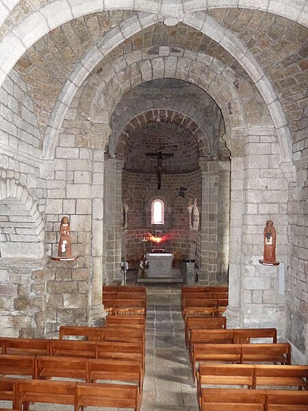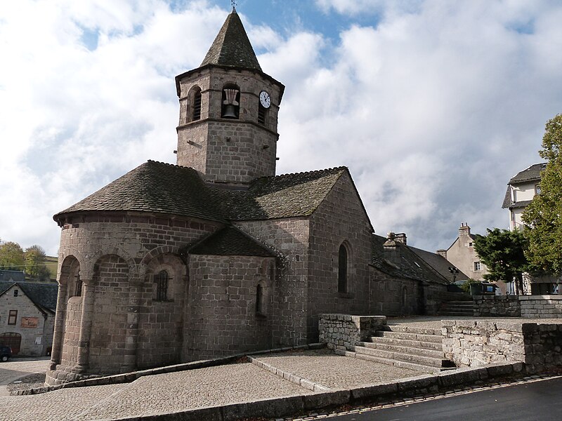 L'église Sainte-Marie de Nasbinals, en Lozère (région Occitanie), est un édifice roman auvergnat implanté sur un plan en croix latine. Sa composition comprend une nef unique, une abside en hémicycle précédée d'une travée droite, un transept débordant avec deux absidioles et, au nord, un collatéral formé de deux chapelles voûtées d'arêtes. L'abside semi‑circulaire est voûtée en cul-de-four et son pourtour polygonal est animé d'une galerie de petites arcatures en plein cintre. La croisée du transept est couverte d'une coupole sur trompes ; des colonnes romanes engagées soutiennent les quatre arcs en plein cintre qui délimitent le carré du transept. L'on attribue la démolition des voûtes de la nef aux dévastations de la guerre de Cent Ans ; elles furent reconstruites au XVe siècle en croisées d'ogives. Le portail méridional présente deux voussures en plein cintre ; trois chapiteaux à droite sont sculptés de feuillage et le quatrième montre le combat d'un sagittaire et d'un lancier. Un clocher octogonal s'élève sur la croisée du transept et se termine par une flèche ; l'assise du clocher sur la croisée constitue un élément saillant de l'élévation. L'édifice est bâti en granite de Margeride, avec des éléments en basalte et en tuf volcanique ; les toitures sont couvertes de lauses de schiste. À l'intérieur, la coupole recouvre la croisée et des tribunes doubles occupent le fond de la nef ; le mobilier comprend un Christ du XVIe siècle et un ensemble polychrome du XVIIIe siècle. L'église a été édifiée aux XIe et XIIe siècles dans le style roman auvergnat et remaniée au XIVe siècle ; elle a aussi subi des interventions ultérieures, notamment l'adjonction d'un bas-côté nord et d'un escalier d'accès au clocher au XVIe siècle. Des documents attestent de l'existence d'une église à Nasbinals en 1074, date à laquelle elle fut donnée à l'abbaye Saint‑Victor, puis intégrée aux domaines de la dômerie d'Aubrac ; des bulles papales de 1079, 1113 et 1135 confirment la possession du prieuré par Saint‑Victor. En 1155, l'abbé de Saint‑Victor reconnut la juridiction de l'évêque de Mende avant de céder le prieuré à la dômerie d'Aubrac, liant ainsi l'avenir de Nasbinals à ce monastère-hôpital jusqu'à la Révolution. Grégoire de Tours indique que la christianisation de l'Aubrac date du Ve siècle ; deux textes du De Gloria Beatorum Confessorum évoquent également des événements liés à la conversion et à la disparition du culte païen dans la région. À l'an mil, l'organisation des routes et drailles favorise les itinéraires de pèlerinage, dont la Via Podensis, et les grandes abbayes multiplient fondations et prieurés le long de ces chemins. Le village de Nasbinals se situe sur cet itinéraire, entre étapes comme Conques ou Moissac, et subit l'influence de centres monastiques tels que la Chaise‑Dieu, Conques et Saint‑Victor. Parmi les événements notables, l'église a vu le baptême en juillet 1755 de Marc‑Antoine Charrier, futur notaire et député du Tiers‑État, exécuté à Rodez en 1793. L'édifice a été classé au titre des monuments historiques en 1921.