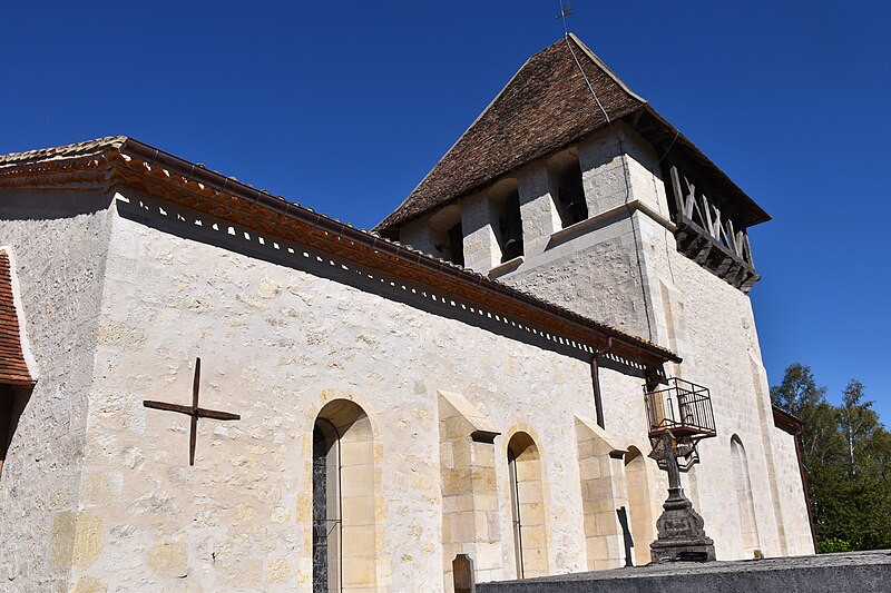 L'église Sainte-Marie-Madeleine de Bournel (Lot-et-Garonne, Nouvelle-Aquitaine) se situe sur la crête de la voie romaine reliant Périgueux à Agen, empruntée autrefois par les pèlerins vers Saint-Jacques-de-Compostelle ; Bournel fut une étape de cette route. L'édifice a été construit à la fin du XIe siècle ou, plus vraisemblablement, au cours du XIIe siècle et est dédié à sainte Marie-Madeleine, patronne des pénitents. De cette phase romane subsistent la travée du clocher voûtée d'une coupole sur pendentifs et le mur sud de la nef ; l'abside a été démolie et remplacée par un chevet plat. La dernière travée, couverte d'une coupole, supporte le clocher et précède le chœur rectangulaire. Un bas-côté au nord double la nef et a été remanié aux XVe–XVIe siècles. Le clocher a été mis en défense, probablement pendant la guerre de Cent Ans, et son couronnement ainsi que l'ajout du bas-côté nord datent du XVe siècle ; la charpente en bois actuelle date de cette période. À la fin du XVe ou au début du XVIe siècle, on attribue la voûte en étoile de la dernière travée du bas-côté nord, les baies du chœur, la partie supérieure du clocher et les deux sculptures du portail représentant une pèlerine et sainte Marie-Madeleine. Vers 1892–1896, des baies de la nef et du bas-côté ont été agrandies ou percées pour recevoir des vitraux, et des voûtes légères ont remplacé le plafond de bois ; les vitraux des baies de la nef et du bas-côté ont été réalisés par Henri Feur vers 1896. En 1912, un affaissement de l'angle nord-est du bas-côté a nécessité la construction d'un contrefort. La façade a été restaurée en 1959 sans modifications notables. L'église a été inscrite au titre des monuments historiques le 7 juillet 1948.