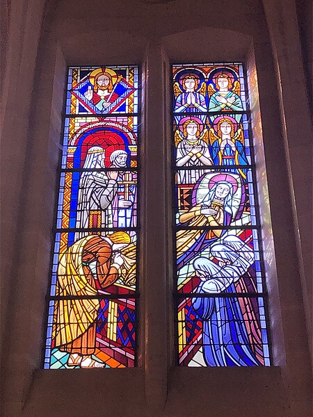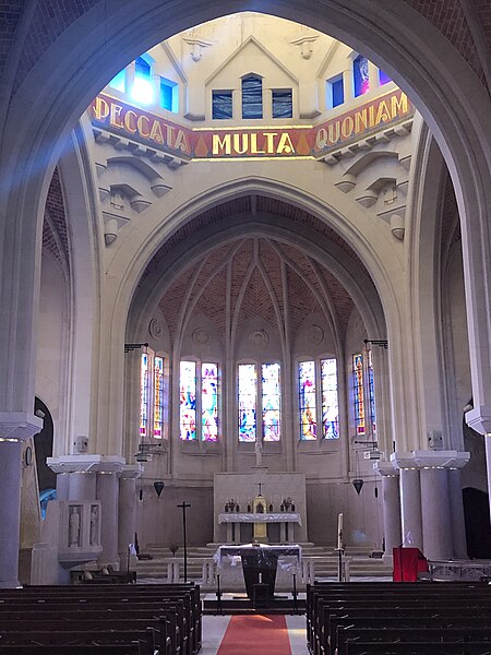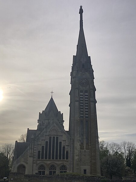 L’église paroissiale Sainte-Marie-Madeleine se dresse sur le Mont Haut, à Mont-Notre-Dame (Aisne), sur un site occupé depuis le haut Moyen Âge. Un chapitre de quatorze chanoines y est installé au milieu du Xe siècle, et plusieurs conciles provinciaux s’y tiennent en 972, 977, 985 et 1023 ; deux évêques de Soissons y sont également inhumés. La tradition attribue l’origine du lieu à une fondation plus ancienne, dite légendaire, au IXe siècle par Girard de Roussillon et son épouse Berthe. La collégiale médiévale fait l’objet d’importants travaux aux XIIe et XIIIe siècles : le chœur circulaire avec déambulatoire et chapelles rayonnantes est reconstruit sur des assises antérieures, puis le transept et la nef ; la façade à trois portails et deux tours, inspirée de la cathédrale de Soissons, est achevée un siècle plus tard. De la première église subsistent huit chapiteaux, probablement issus de la crypte primitive, aujourd’hui conservés au musée Saint-Remi de Reims. L’édifice médiéval subit de nombreuses destructions et réparations : incendies et pillages aux XVIe et XVIIe siècles, démantèlement progressif du chevet et des bâtiments canoniaux au XIXe siècle, et dommages répétés dus aux conflits. Visité par l’empereur Guillaume II le 17 juin 1918, le bâtiment est miné et dynamité par l’armée allemande les 2 et 3 août 1918 ; seules des portions de la crypte et le soubassement du mur ouest du bras nord du transept sont épargnés. Après un déclassement intervenu en 1926 à la suite des destructions, l’église est reconstruite de 1929 à 1933 sur l’emplacement de la collégiale, d’après les plans des architectes Georges Grange et Louis Bourquin. La reconstruction, ambitieuse et considérée comme l’un des plus importants chantiers religieux du département, combine techniques modernes et matériaux traditionnels, et intègre des références architecturales romanes et gothiques tout en adoptant des formes proches de l’Art déco. L’édifice reconstruit, élevé en pierre de taille avec recours au béton armé, est consacré le 23 avril 1933 par Monseigneur Ernest-Victor Mennechet. Le décor intérieur rassemble un répertoire varié : sculptures (chemin de croix, chaire) d’Ernest Sediey, fresques d’Eugène Chapleau, vitraux d’après des cartons de René Bour réalisés par le maître-verrier Jacques Damon, et ferronnerie signée Marcel Decrion. Un dépôt lapidaire aménagé dans la chapelle de la Vierge permet de présenter la plupart des éléments sculptés dispersés en 1918. L’église, en forme de croix latine coiffée d’un dôme, se distingue par une importante surface de vitraux illustrant notamment les Noces de Cana, l’Assomption, la Dormition et l’Immaculée Conception, ainsi que par son volume élevé d’environ 63 mètres. Elle a connu des protections successives au titre des Monuments historiques : classée à la fin du XIXe siècle, déclassée après la guerre et à nouveau protégée à la fin du XXe siècle. Le cimetière attenant contient, entre autres, la tombe de Marie-André Poniatowski.