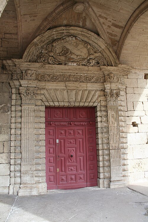 Le portail, y compris la porte en bois sculpté : inscription par arrêté du 23 avril 1953