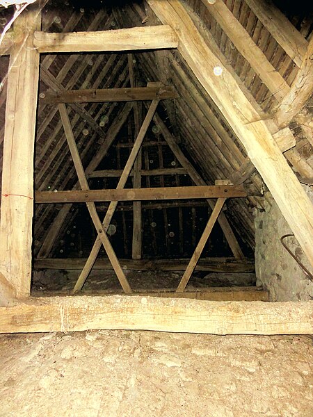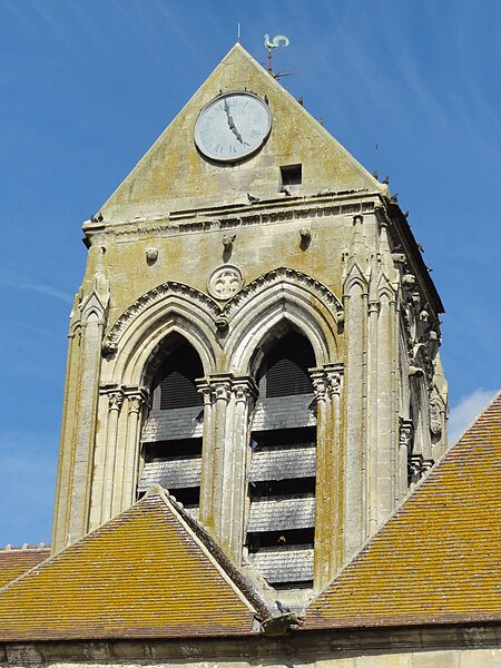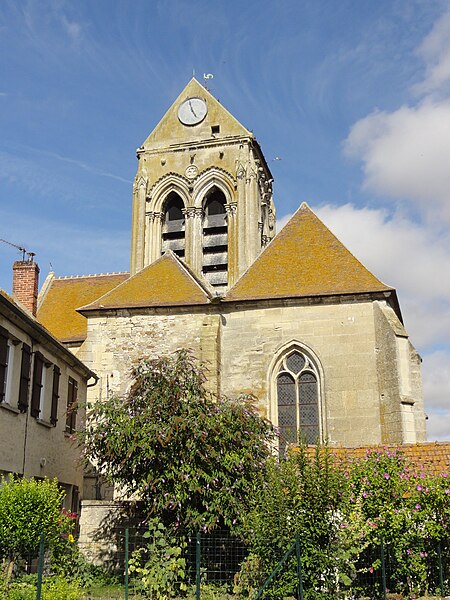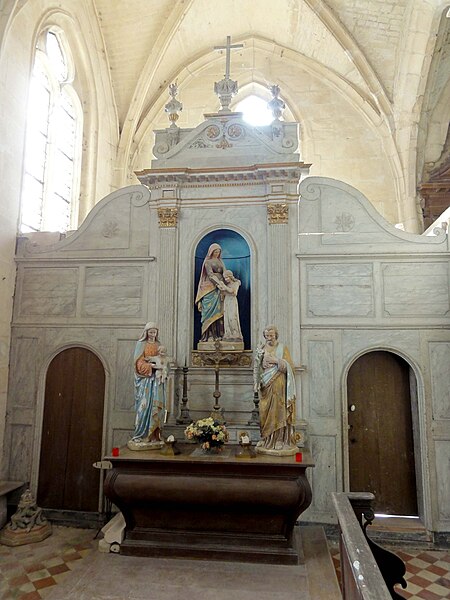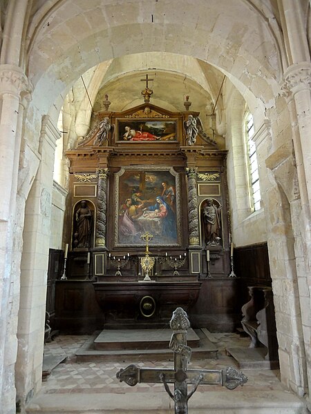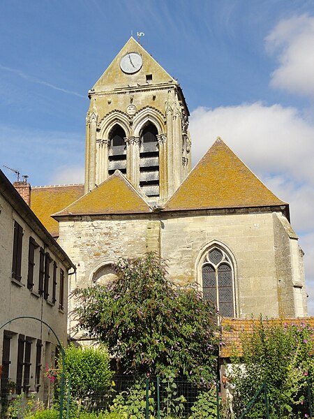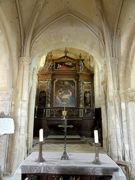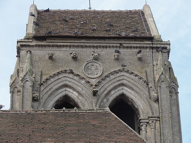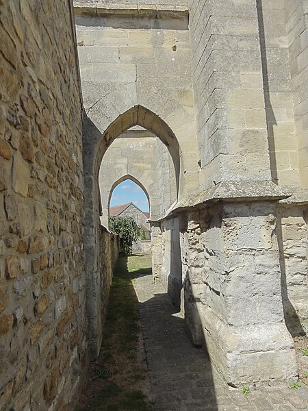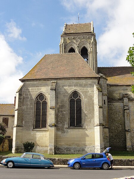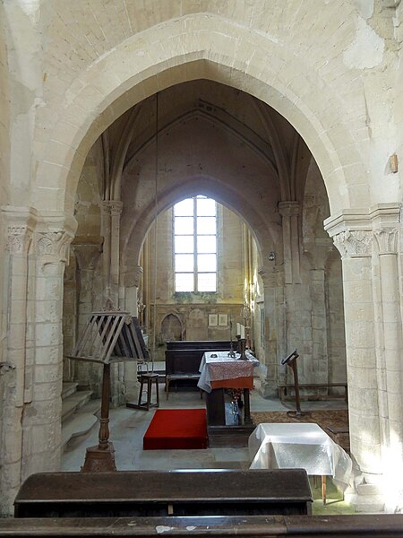L'église Sainte-Marie-Madeleine du Bellay-en-Vexin, située au centre du village dans le Val-d'Oise, est une paroisse catholique d'origine romane dont le plan cruciforme a peu changé malgré de nombreuses campagnes de travaux. Sa structure associe une nef-grange romane remaniée, la base du clocher qui sert de croisée du transept, un croisillon sud reconstruit en chapelle gothique rayonnante, une chapelle nord flamboyante en deux travées et un chœur carré de style Renaissance. L'intérêt principal réside dans les chapiteaux romans de la base du clocher, issus de plusieurs campagnes et visibles surtout depuis l'intérieur, tandis que la voûte et les colonnettes datent de la fin du XIIIe siècle. L'aspect extérieur sobre, dominé par un clocher en bâtière richement décoré et par deux portails dont l'un est aujourd'hui bouché, témoigne surtout de la période rayonnante. Classée monument historique depuis 1965, l'église est aujourd'hui en bon état mais les célébrations y sont rares, la paroisse étant affiliée à une plus vaste paroisse de Magny-en-Vexin. L'édifice occupe l'ancien cimetière du village, où subsiste une croix de pierre gravée de 1643, et forme un ensemble remarquable avec la ferme de l'hôtel-Dieu voisine, manoir classé depuis 1913. La date exacte de la fondation paroissiale reste incertaine; des études anciennes la situent au milieu du XIIe siècle et la présentent dédiée à sainte Marie-Madeleine. Aux XIIe et XIIIe siècles la cure et une partie des dîmes furent l'objet de donations et de conflits entre la famille locale du Bellay et l'abbaye Saint-Martin de Pontoise, des litiges qui se prolongent pendant plus d'un siècle. Les éléments romans de la base du clocher, notamment des arcades en plein cintre et leurs chapiteaux, pourraient remonter à la fin du XIe ou au début du XIIe siècle, tandis que l'apparition de l'arc brisé dans la région après 1125 conduit certains spécialistes à situer la transformation de la base en croisée du transept vers 1140. À la fin du XIIIe siècle la chapelle dite de la Vierge remplace le croisillon sud roman et la base du clocher est revoûtée dans un style rayonnant, avec l'adjonction de faisceaux de colonnettes aux angles. La chronologie du clocher suscite des avis divergents chez les auteurs, certains proposant une construction à la fin du XIVe siècle et d'autres une datation plus ancienne; des trompes visibles à l'intérieur témoignent d'un projet de flèche octogonale inachevé. Durant la période rayonnante la nef reçoit de nouveaux portails et certaines fenêtres sont percées ou modifiées; au début du XVIe siècle le croisillon nord est remplacé par une chapelle flamboyante et le chœur est rebâti dans un goût de la Renaissance. Des interventions ultérieures incluent des réparations du plafond et du chœur vers 1720, l'ouverture de passages berrichons en 1750 qui ont endommagé les contreforts du clocher, puis des travaux de sacristie et de vitrerie en 1857. L'église conserve une nef non voûtée et des parties voûtées d'ogives dans les autres espaces; la base du clocher présente une cohabitation visible d'éléments romans et gothiques, avec arcades en plein cintre et en tiers-point reposant sur tailloirs et faisceaux de colonnettes. Les chapiteaux romans, sculptés de palmettes, feuilles d'acanthe, rinceaux et quelques figures humaines ou monstrueuses, sont de grande qualité; d'autres chapiteaux de la fin du XIIIe siècle affichent un décor de feuillage plus stylisé. La chapelle sud rayonnante présente un remplage orné d'un grand hexalobe encadré de colonnettes et une niche d'autel peu profonde largement prise par le retable; la chapelle nord en deux travées et le chœur montrent des remplages et des profils d'ogives caractéristiques des périodes flamboyante tardive et Renaissance. À l'extérieur, le beffroi visible sous le toit en bâtière est percé de paires de baies abat-son en tiers-point encadrées par colonnettes et frises de crochets, et des têtes sculptées en saillie animent les faces du clocher. Le portail occidental, mutilé, et le portail latéral nord, aujourd'hui bouché, portent des traces de moulures et d'un tympan largement disparu; la façade ouest, simple et scandée par bandeaux, révèle la hauteur primitive des murs romans. Le mobilier comporte plusieurs pièces remarquables et classées : la cloche datée de 1535, un grand tableau de retable de Charles-Alphonse Du Fresnoy représentant l'Adoration des bergers, un tableau de la Madeleine pénitente attribué traditionnellement à Jean-Baptiste Santerre, ainsi que des sculptures dont une Vierge de Pitié du XVe siècle et une statue de sainte Madeleine. La cloche, restaurée à la fin du XXe siècle, porte un décor en bas-relief et une inscription mentionnant son nom; certaines œuvres anciennes ont été déclassées ou ont disparu. Depuis l'érection du diocèse de Pontoise, la paroisse du Bellay est desservie par les prêtres du secteur pastoral du Vexin ouest et les messes dominicales s'y tiennent de manière irrégulière; depuis 2012 une communauté religieuse, la communauté Mère du Divin Amour, est implantée au Bellay.