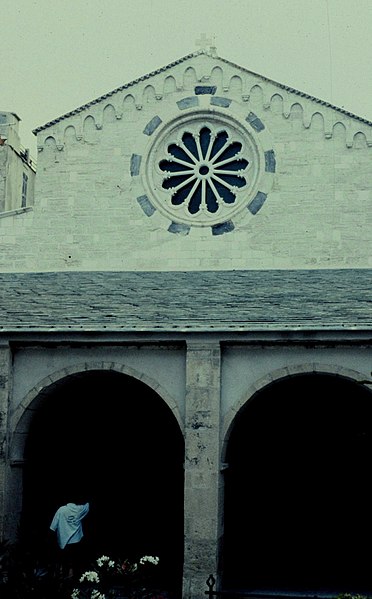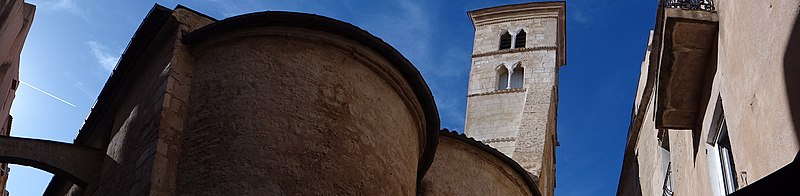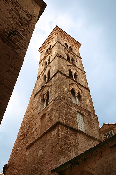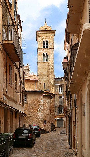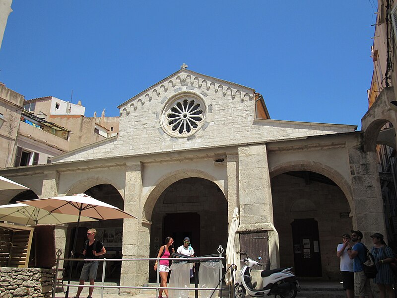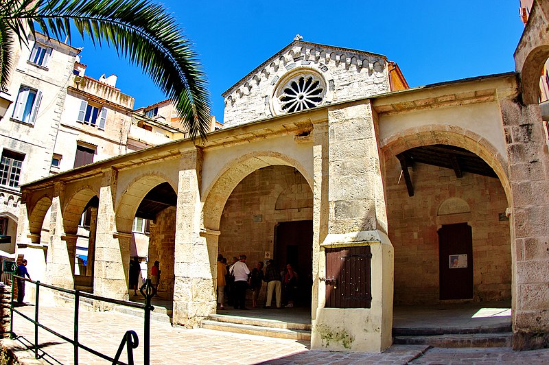 L'église Sainte-Marie-Majeure, dite Sainte-Marie, se dresse au cœur de la Haute-Ville de Bonifacio, en Corse-du-Sud. Edifiée à la fin du XIIe siècle pendant la période pisane, elle dépendait de la juridiction de l'archevêque de Gênes. Son existence est attestée par un acte notarié du 5 septembre 1222 et par des documents de 1238. La façade occidentale, en calcaire blanc, est surmontée d'un fronton triangulaire animé d'arcatures aveugles et précédée d'une loggia couverte d'une charpente. Cette loggia, remaniée vers 1872, présente une série d'arcades reposant sur des piles en pierre et une toiture à longs pans. Une loggia à six pilastres reliés par des arcs prolonge l'édifice et donne accès à la citerne communale située en dessous. La citerne, reliée aux maisons voisines par des arcs-boutants qui servaient aussi de soutènement, avait une capacité importante et permettait de recueillir les eaux de pluie, fonction utile en cas de siège. Le clocher, élevé au XIVe siècle, repose partiellement sur les absides médiévales ; sa base est romane, les quatre étages supérieurs sont gothiques et son couronnement date du XVIIIe siècle. De puissants contreforts, édifiés entre le XVe et le XVIIIe siècle, ont été ajoutés pour empêcher le basculement du clocher vers le sud. Des chéneaux médiévaux recueillant les eaux pluviales témoignent des aménagements hydrauliques anciens. L'intérieur comprend trois nefs ; chacune abrite un autel en marbre polychrome du XVIIe siècle et le maître-autel contient les reliques de saint Boniface, patron de la ville. On y trouve aussi une statue de la Vierge de l'Assomption, une statue de saint François en marbre de Brando datée du XVIIe siècle, ainsi que des peintures telles que La Cène (XVIIIe siècle) de Saverio Farinole et L'Apparition du Christ à saint Isidore de J. Couston. La sacristie actuelle a été aménagée au début du XVIIe siècle avec un accès au chœur, et le maître-autel ainsi que les chapelles latérales datent du deuxième quart du XVIIIe siècle. En 1756 la corporation des marchands commanda la chapelle Notre-Dame du Mont-Carmel au sculpteur Giulio Martinetti, et la chapelle du Sacré-Cœur fut édifiée en 1769. En 1815, le clocher subit d'importants dégâts après des tirs de canon lors d'affrontements locaux. Classée au titre des monuments historiques en 1982, l'église a fait l'objet de campagnes de restauration : de 1984 à 1995 sous la direction de l'architecte en chef Pierre Colas, qui a restitué certains aspects originels de la façade et du clocher, puis de 2005 à 2014 sous la conduite de l'architecte en chef des Monuments Historiques Jacques Moulin, qui a notamment achevé la reprise de l'intérieur. L'édifice, principalement roman et d'une surface de plus de 500 m², demeure l'un des plus anciens monuments de la ville.