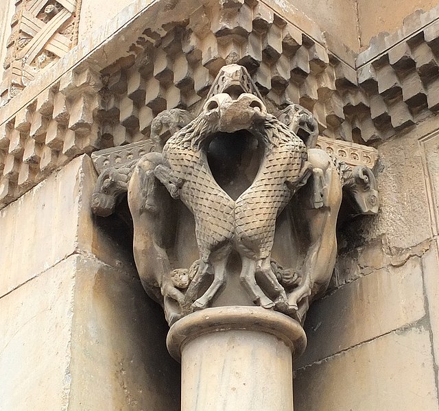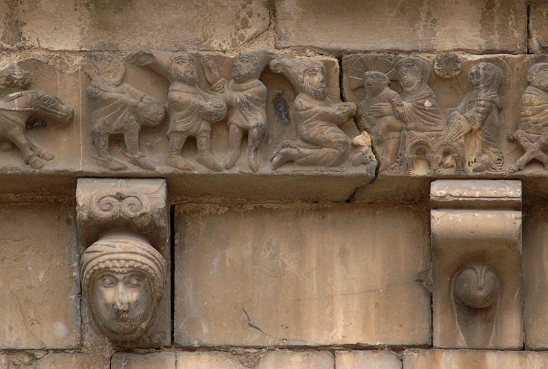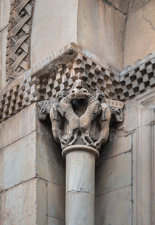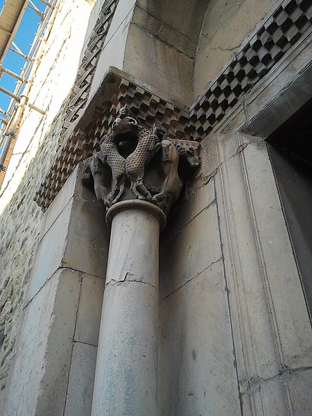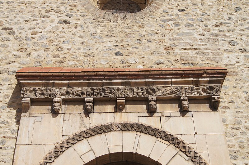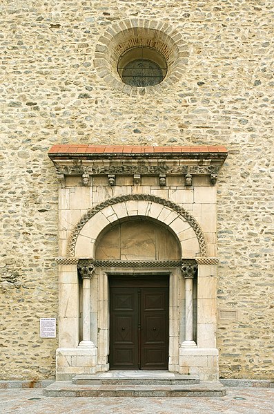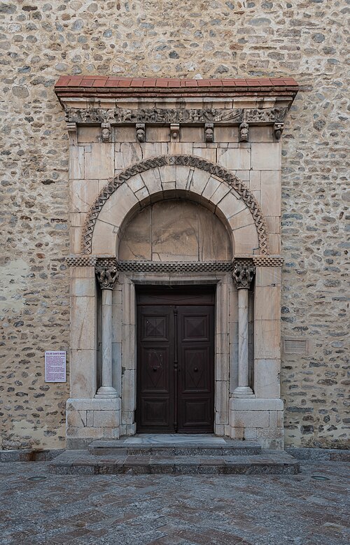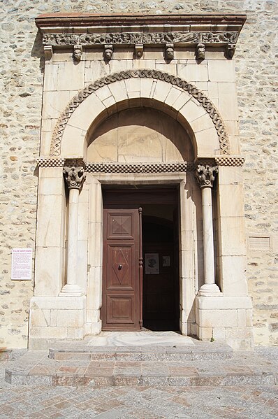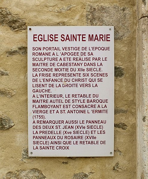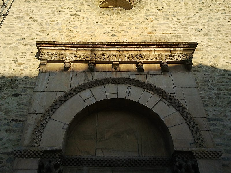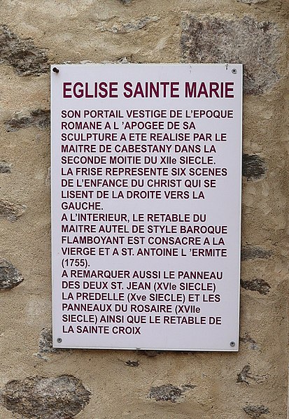 L'église Sainte-Marie du Boulou, située au Boulou dans les Pyrénées-Orientales, est en partie de style roman. Elle est classée monument historique pour son porche (1910) et pour son portail (1938). L'édifice date du XVIIe siècle, mais conserve un portail roman en marbre blanc sculpté, attribué au Maître de Cabestany. Une frise surplombant le portail représente des scènes de l'Enfance de Jésus que l'on lit de droite à gauche : l'annonce aux bergers, la Nativité, l'Adoration des Mages et la Fuite en Égypte. Derrière le maître-autel se trouve un retable baroque consacré à la Vierge Marie et à saint Antoine ermite. L'église préserve également plusieurs éléments remarquables, parmi lesquels le portail, une plaque funéraire de Pierre de Casellès (décédé en 1220), un chapiteau gauche et un chapiteau droit, une cloche datée de 1436, le maître-autel lui-même et un panneau d'information.