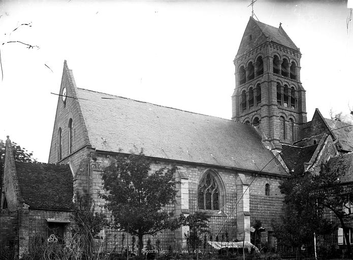 Les patronnes de l'église sont deux vierges écossaises martyrisées à Balagny-sur-Thérain à la fin du Ve siècle ; leurs corps furent d'abord enterrés sur place puis transférés à Nogent avant d'être mis à l'honneur dans l'église, au moment du transfert des reliques en 1185. La nef, le clocher et le transept datent vraisemblablement de la fin du XIe ou du début du XIIe siècle. En 1241, le roi saint Louis fit offrir de nouvelles châsses, et la tradition attribue à son séjour la décision d'édifier un chœur plus digne ; la construction du chœur-halle gothique commença vraisemblablement autour de 1245 ou peu après. Jusqu'au 1er juillet 1905, la commune porta le nom de Nogent-les-Vierges.