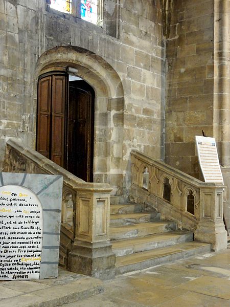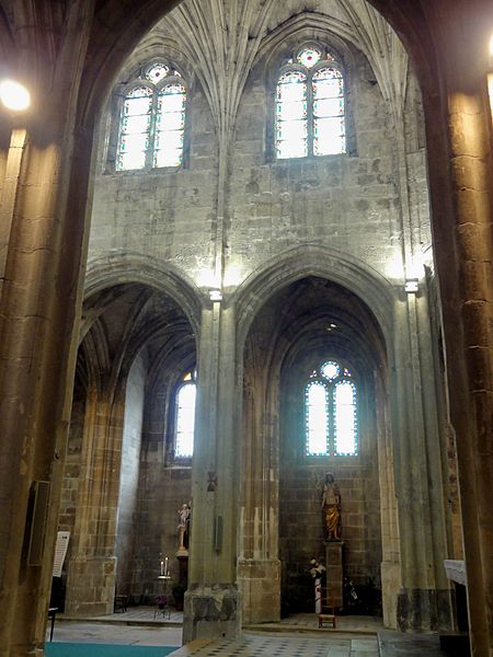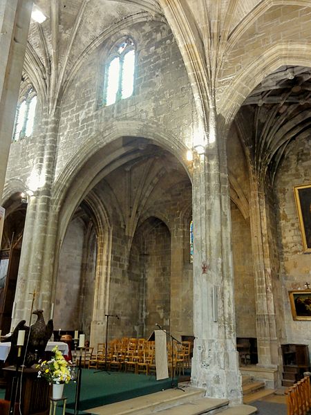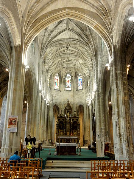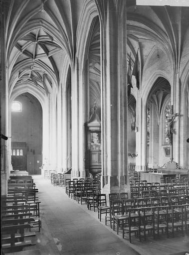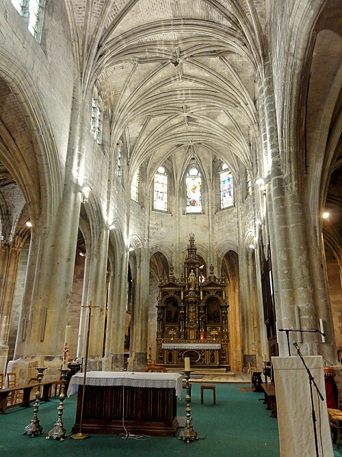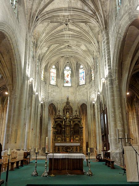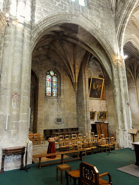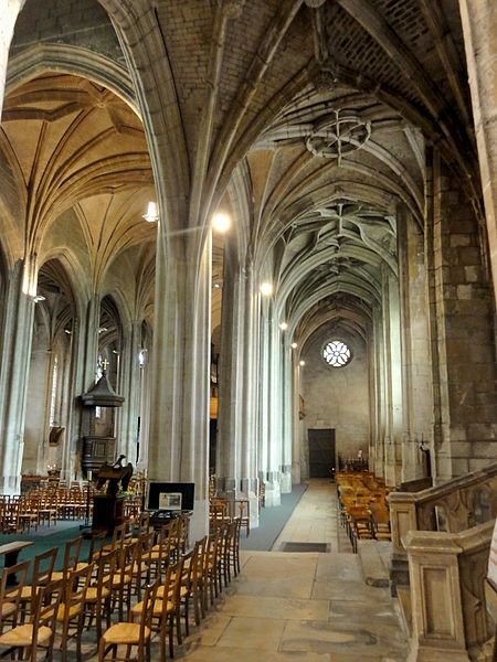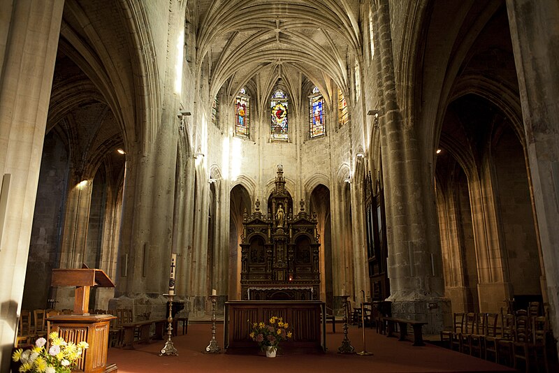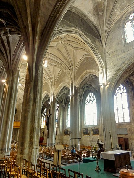 Rebâtie intégralement après les destructions de la guerre de Cent Ans, elle a connu trois campagnes principales : la nef et ses collatéraux au dernier quart du XVe siècle, le chœur et le déambulatoire durant la première moitié du XVIe siècle, et enfin le clocher entrepris au tournant de la fin du XVIe siècle. Cette évolution explique la grande homogénéité générale de l’ensemble, malgré quelques éléments de style Renaissance nettement lisibles sur le clocher. L’édifice se caractérise par un gothique flamboyant raffiné : la nef offre une élégance et une clarté remarquables, obtenues notamment par des collatéraux voûtés presque à la même hauteur que le vaisseau central et par des voûtes à liernes et tiercerons dont les nervures s’unissent de façon organique aux piliers. Le chœur, plus sombre et moins orné, présente des murs lisses aux lignes courbes, de grandes arcades et des supports soigneusement travaillés qui lui confèrent néanmoins une forte qualité architecturale.
