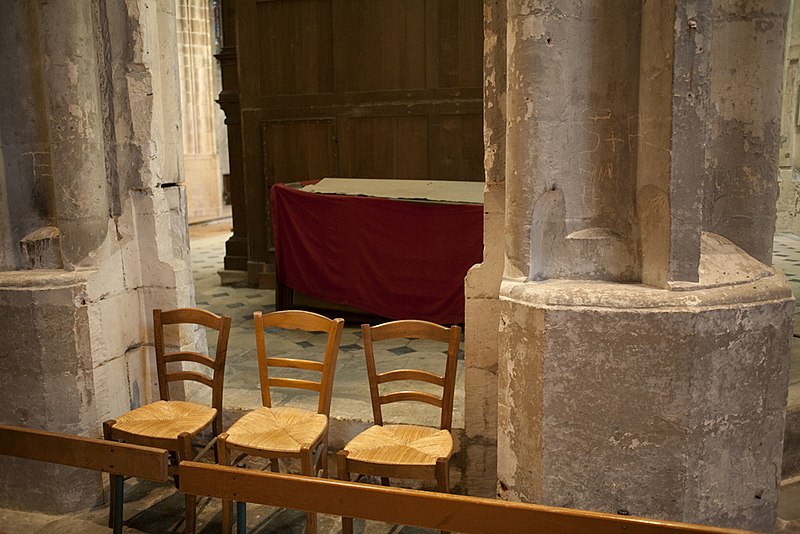 Le chœur conserve un retable et un ancien maître‑autel du XIXe siècle de style Empire ainsi que plusieurs autels néogothiques et néo‑baroques dans les chapelles ; l’autel de sainte Maxence, ajouré, contient un gisant. Enfin, la paroisse elle‑même a été marquée au XIXe siècle par le curé Benjamin‑Léandre Langlois, fondateur d’institutions locales et honoré par une plaque dans le collatéral nord du chœur. Les spécialistes soulignent l’homogénéité et la qualité du style flamboyant de l’église, en particulier la finesse des voûtements et l’intégration organique des nervures aux supports.