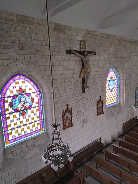 À l'intérieur, la nef unique succède à une travée d'entrée qui abrite la tribune et l'accès au clocher. Les grilles du chœur sont attribuées au ferronnier Jean Veyren. Treize verrières réalisées par le maître‑verrier amiénois Pierre Pasquier ornent l'édifice, certaines datées de 1938 ; une verrière de l'entreprise In Vitraux (Anciens Ateliers Cagnart) a été ajoutée en 2018. L'église conserve plusieurs œuvres protégées au titre d'objet : un groupe sculpté en bois peint du XVIIe siècle représentant sainte Anne et la Vierge, une statue en bois bruni de saint Vincent de Paul (XVIIIe siècle, attribuée à Jean‑Baptiste Carpentier), des statues de la Vierge à l'Enfant, de saint Pierre et de saint Paul (XIXe siècle), ainsi qu'un maître-autel en marbre et une crédence en bois et marbre. Deux toiles figurent également parmi les objets protégés : une Mise au tombeau (huile sur toile du XIXe siècle, provenant de Ribemont‑sur‑Ancre), inscrite le 10 mai 1983, et une peinture du XXe siècle intitulée Le curé de la commune d'Albert fuyant avec Notre‑Dame de Brebières.