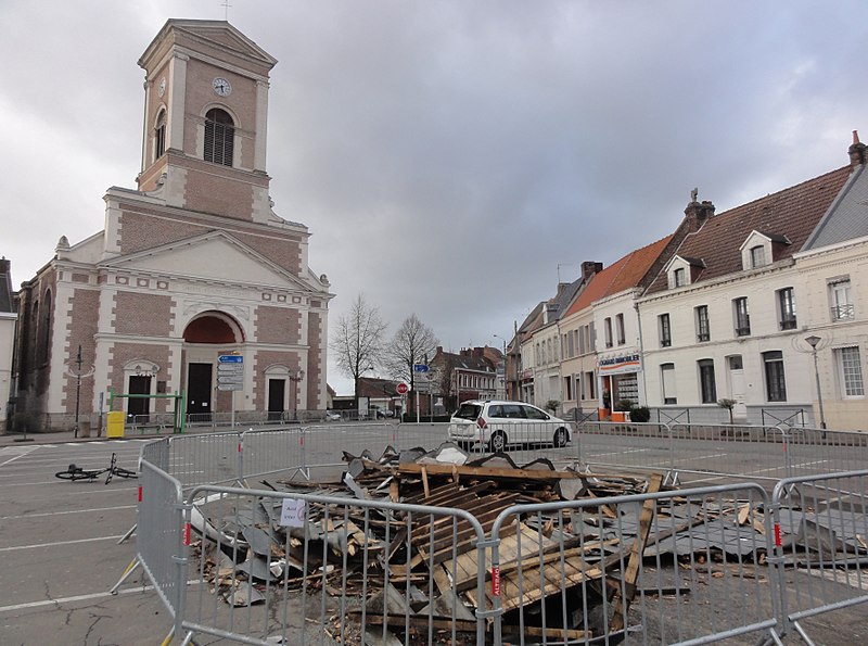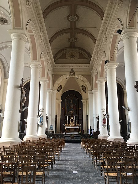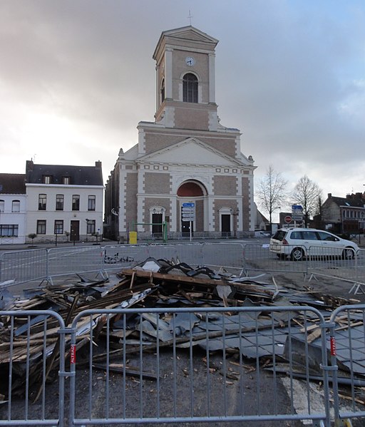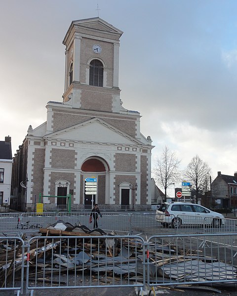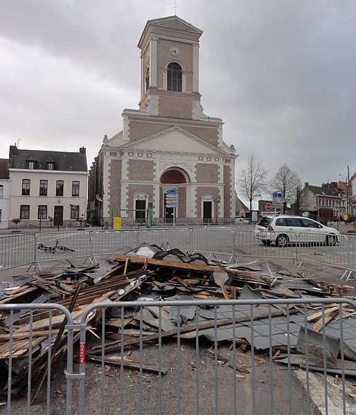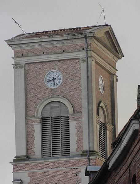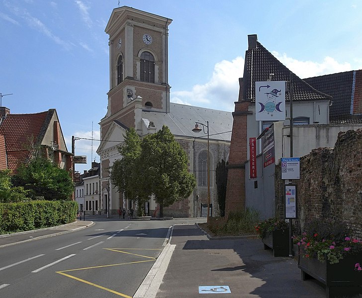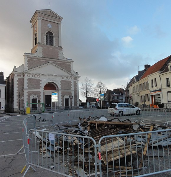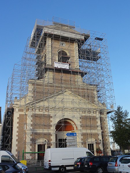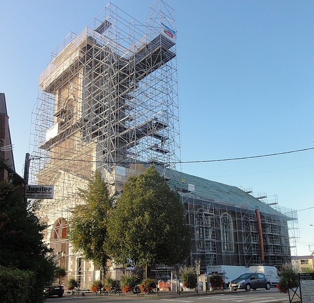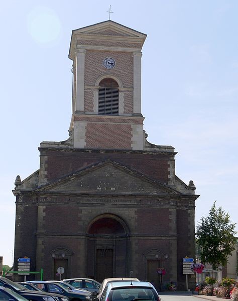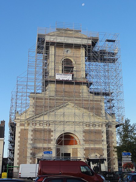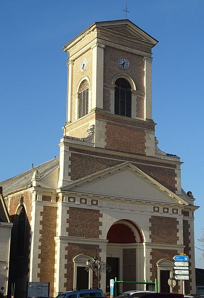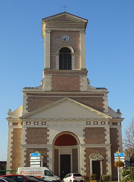 L’église Sainte-Rictrude, dédiée à sainte Rictrude, est située à Marchiennes dans le département du Nord. Depuis le Moyen Âge, une église paroissiale entourée d’un cimetière se trouvait à proximité de la place, à l’écart de l’abbaye bénédictine ; cette ancienne église, datée du XIVe ou du XVe siècle, fut fragilisée par la foudre qui atteignit son clocher en 1742 et jugée trop petite pour la population. Par ordonnance de l’évêque d’Arras en date du 8 octobre 1779, la pratique du culte y fut interdite et la reconstruction fut décidée la même année et confiée à l’architecte lillois Jacques-François-Joseph Lesaffre. Après le transfert du cimetière à l’extérieur de la ville en 1785, les travaux commencèrent à la fin de 1786 et le gros œuvre fut achevé lorsque, le 18 décembre 1790, la tour s’effondra sur la nef, stoppant les travaux. Après la Révolution, l’architecte lillois B. A. Dewarlez-Lepers prit en charge la reconstruction des voûtes et de la tour ; les travaux furent adjugés en 1811 et achevés en 1815, mettant fin, selon les sources, à trente-cinq ans sans lieu de culte. Dewarlez dessina également le mobilier dont seules subsistent les stalles et la clôture qui les surmonte, tandis que l’aménagement intérieur et l’ameublement furent complétés ou renouvelés tout au long du XIXe siècle. En 1864, l’architecte tourquennois Charles Maillard conçut une décoration architecturale intérieure plus riche : voûtes, arcs et baies furent ornés d’un décor de plâtre. La façade, dessinée par Lesaffre, repose sur un soubassement en grès et s’élève en brique, associée à des pierres calcaires blanches d’Hordain et du Tournaisis ; elle relève d’un courant néoclassique. La façade et le clocher furent restaurés en 1902‑1903 et, lors du conseil municipal du 20 mai 1903, la devise « Liberté, Égalité, Fraternité » fut gravée sur le fronton. L’édifice a été inscrit aux monuments historiques par arrêté du 6 mai 1992. Le clocher a fait l’objet d’une restauration en 2001; la façade a été refaite de mars à août 2011 pour un coût total de 181 354 €, réparti entre la réfection des pierres et la couverture, et l’orgue a été remis en état. Enfin, le 3 janvier 2018, la moitié nord de la toiture du clocher a été arrachée par la tempête Eleanor.